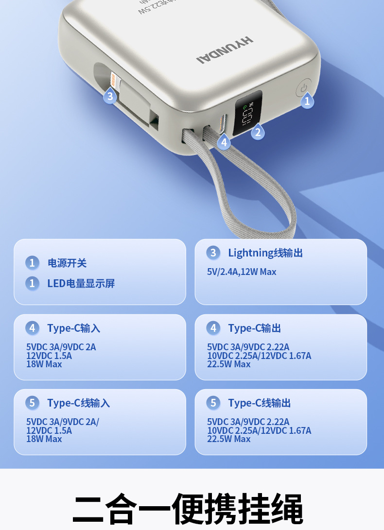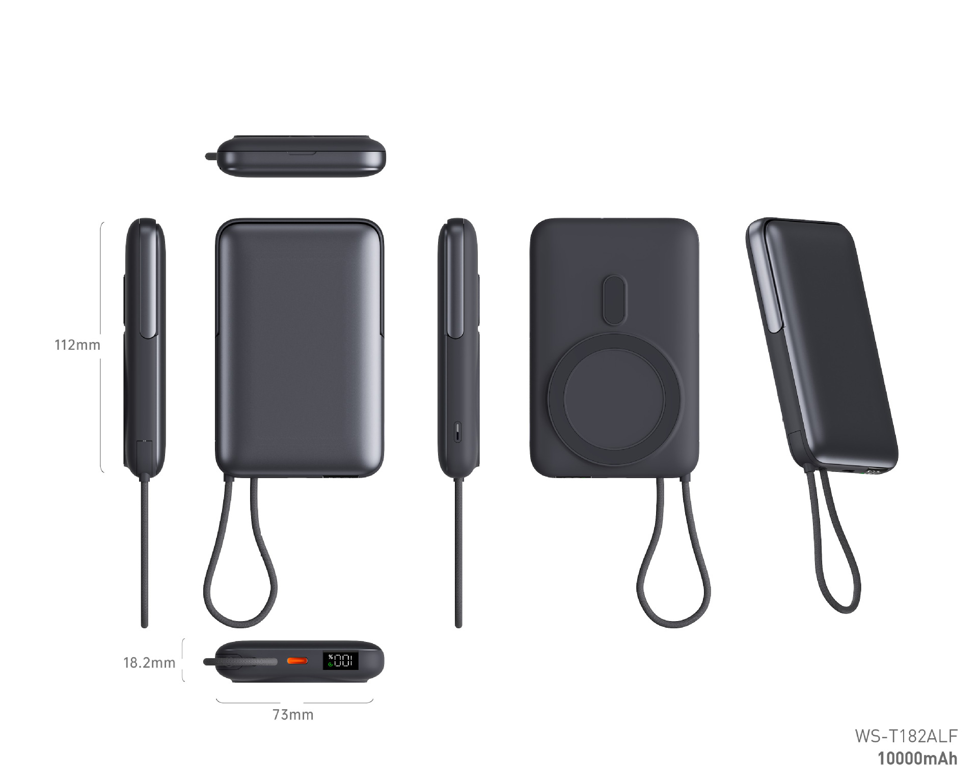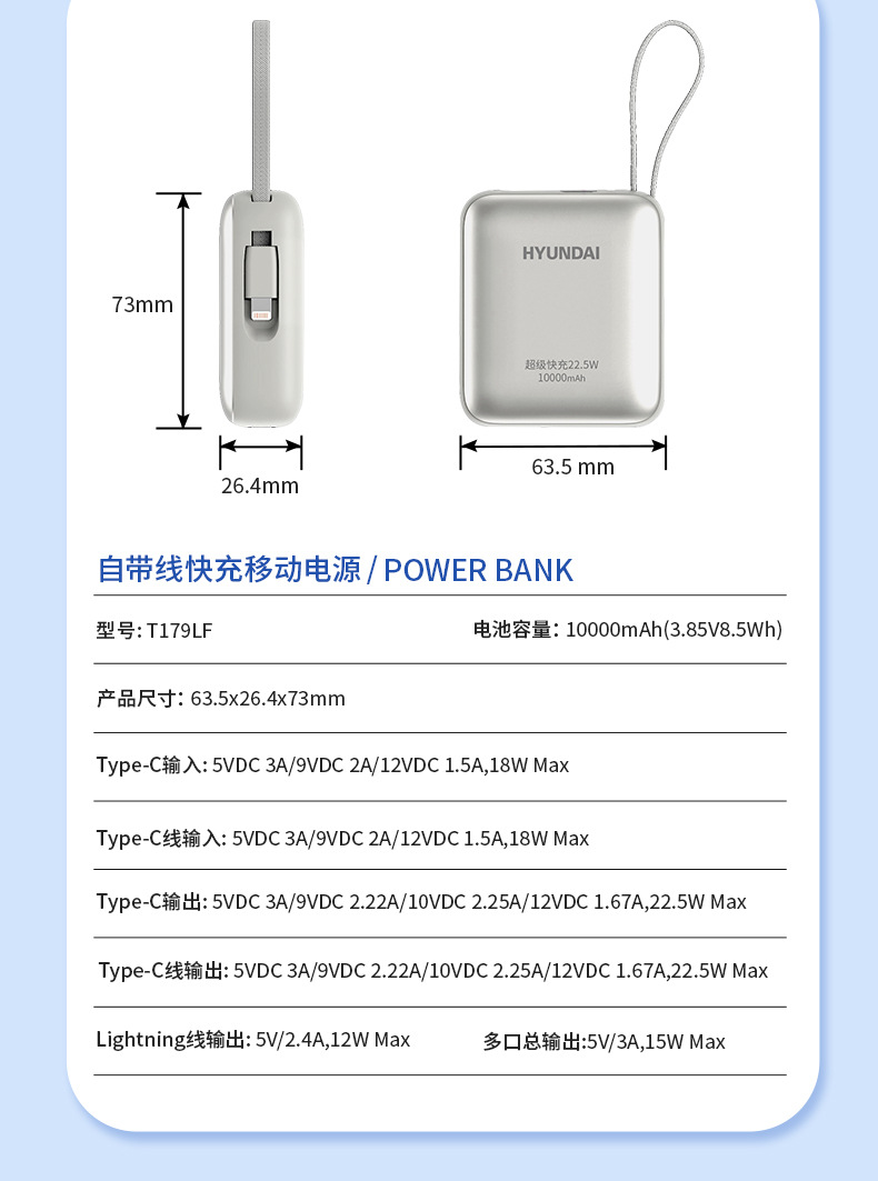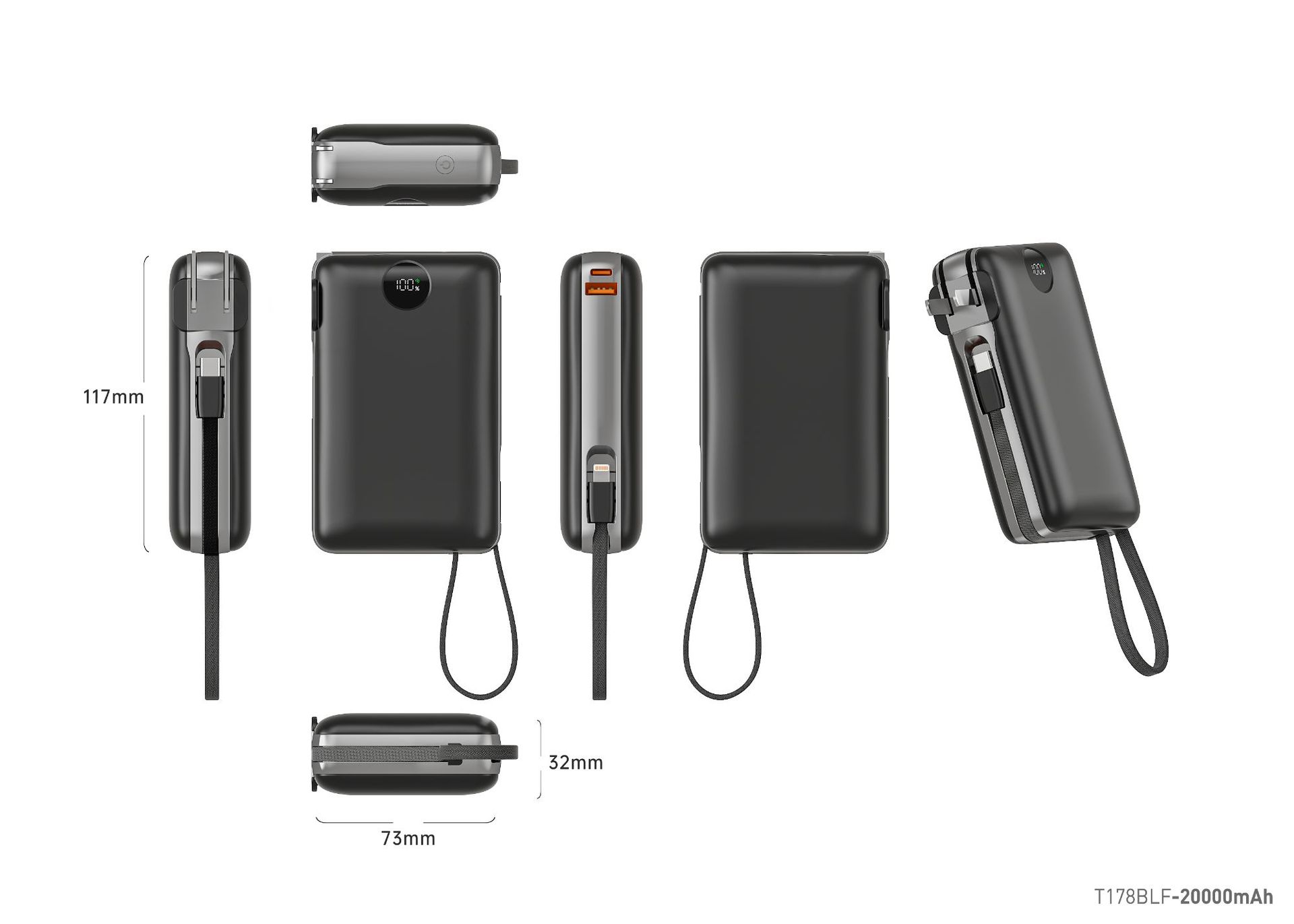 | Capacidad de alimentación | 20000 mA (T178LF enchufe con cable 2 en 1 carga rápida), 10000 mA (T179LF con cable de carga rápida), 20000 mA (T180LF con cable de carga rápida), 10000 mA (T182ALF magnetic cargar rápido fuente de alimentación portátil) |