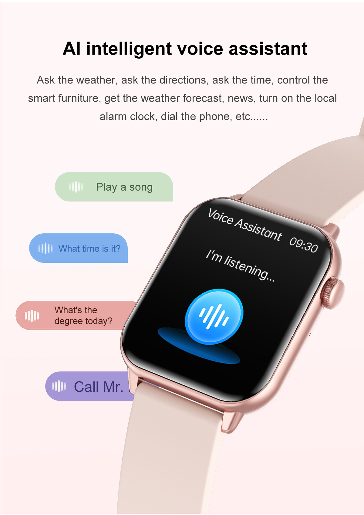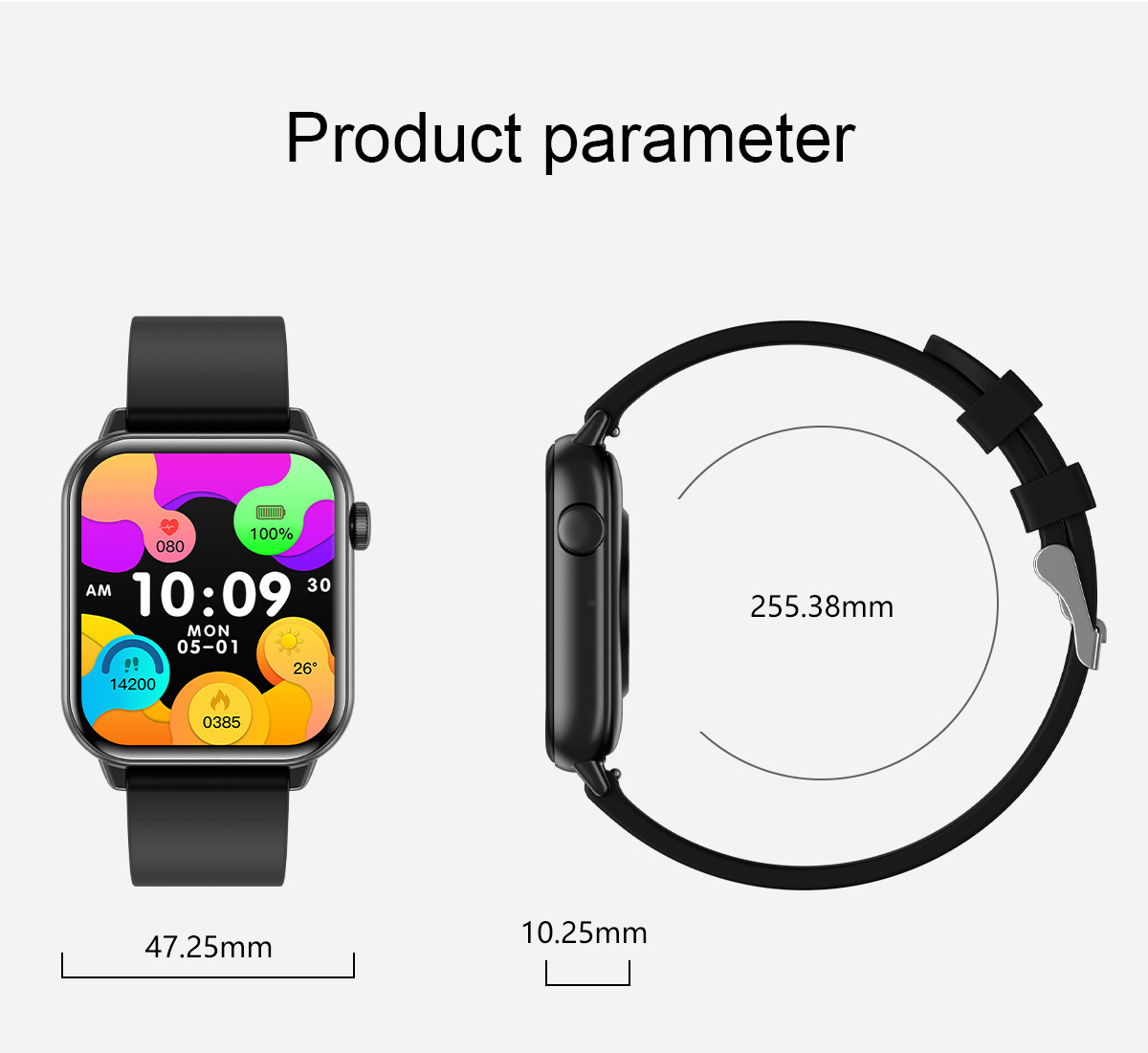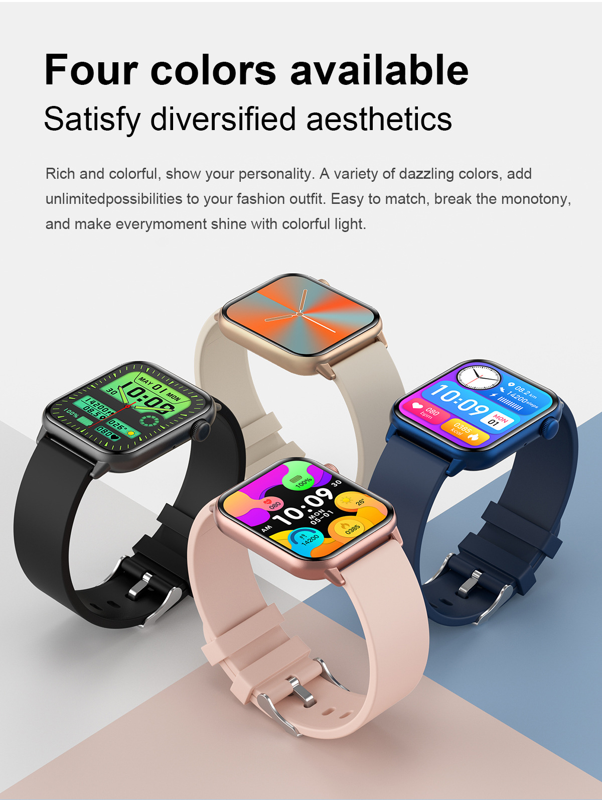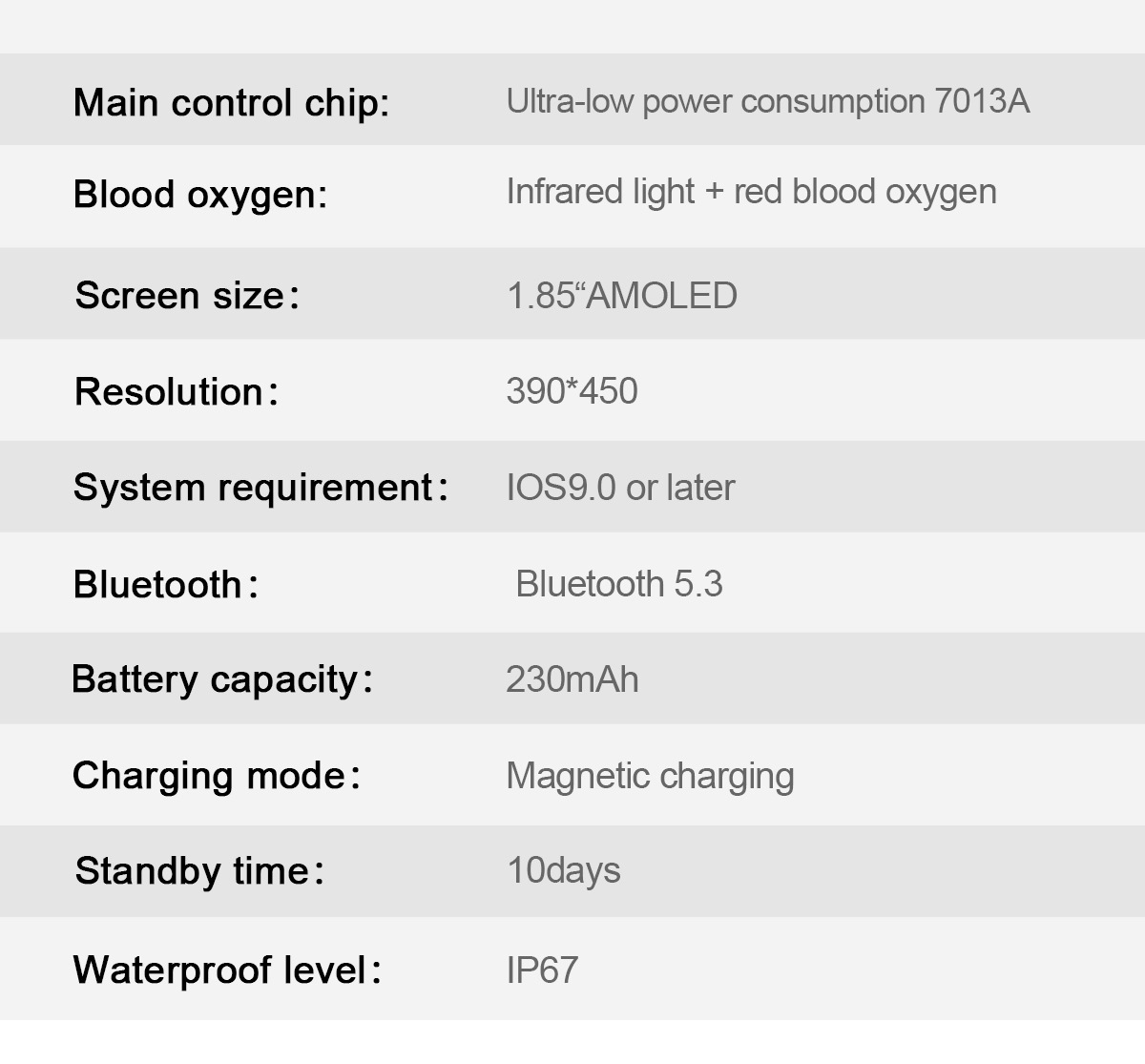 | Función | Impermeable,Conteo de pasos,Monitorización de la frecuencia cardíaca,Medición de la presión arterial,Entretenimiento social,Medir la temperatura corporal,Llamada de Bluetooth,Recordatorio inteligente,Control remoto selfie,Monitorización del sueño,Detección de oxígeno en sangre |