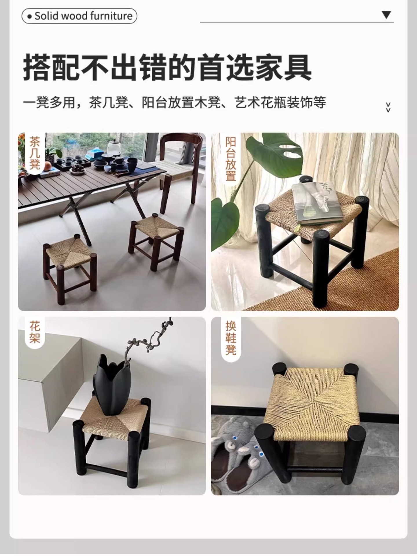 Taburetes de madera maciza para cambiadores de zapatos caseros, taburetes cortos de tela de caña, taburetes retrógrados, taburetes de mesa de té de alto valor de cara