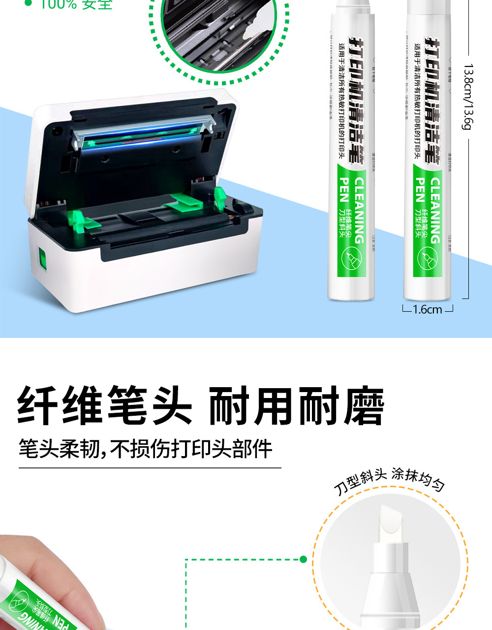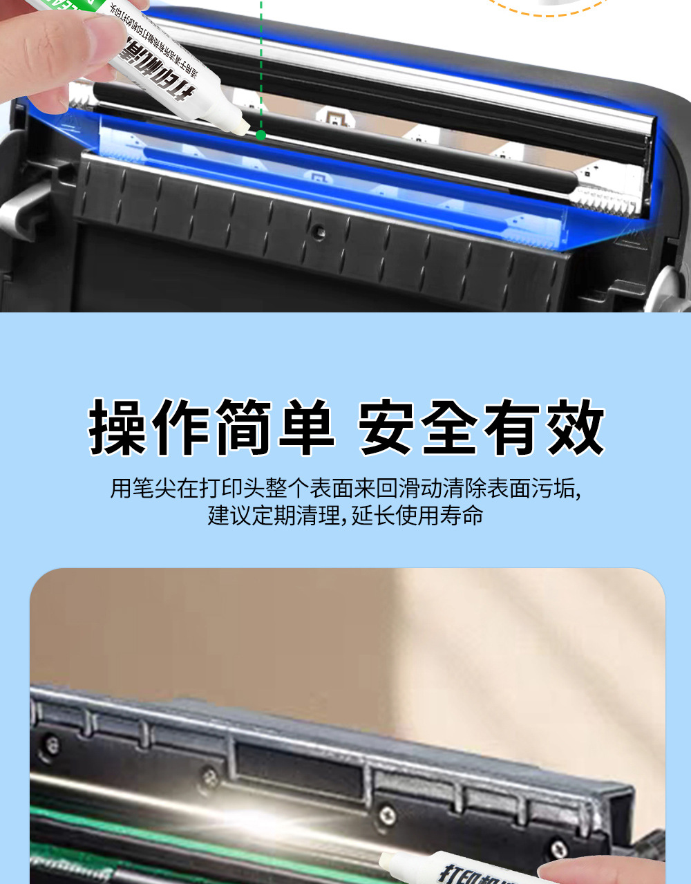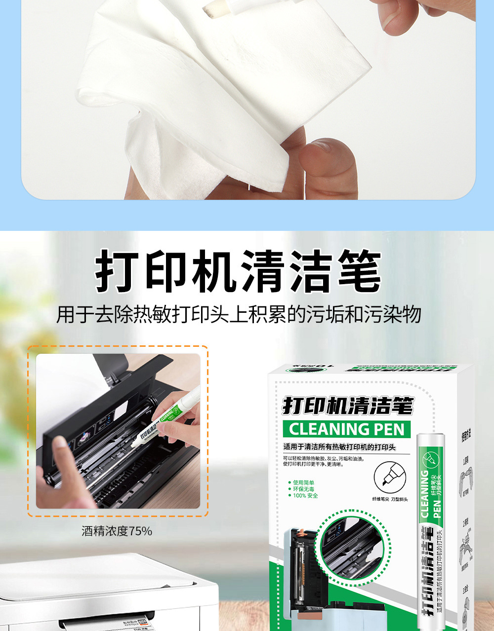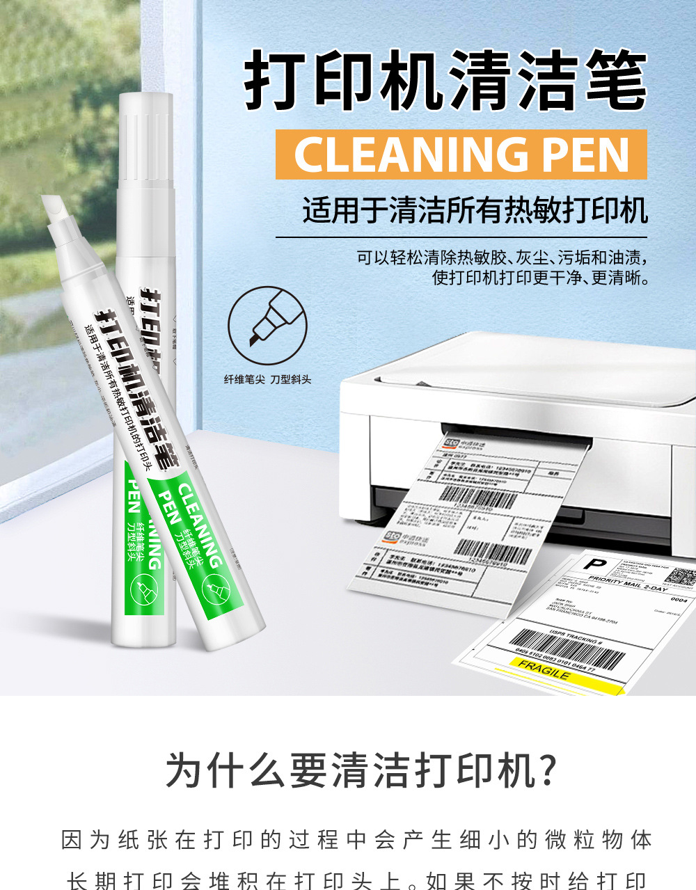Impresora térmica transfronteriza Pluma de limpieza con alcohol Pluma de limpieza con cabezal de corte de fibra Pluma de limpieza de hoja adhesiva