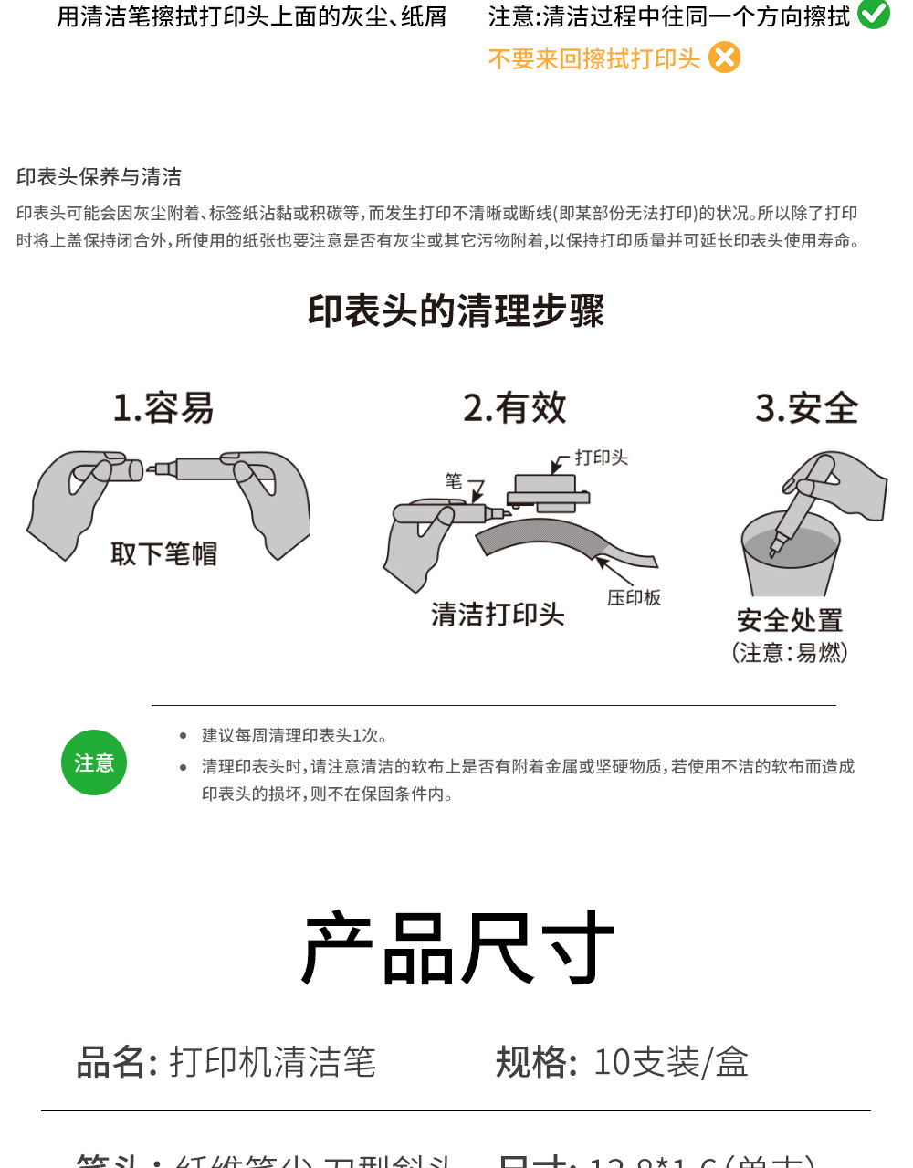 (1 bolígrafo de limpieza de impresora) estilo inglés,(Caja de lápiz de limpieza de impresora) estilo inglés
