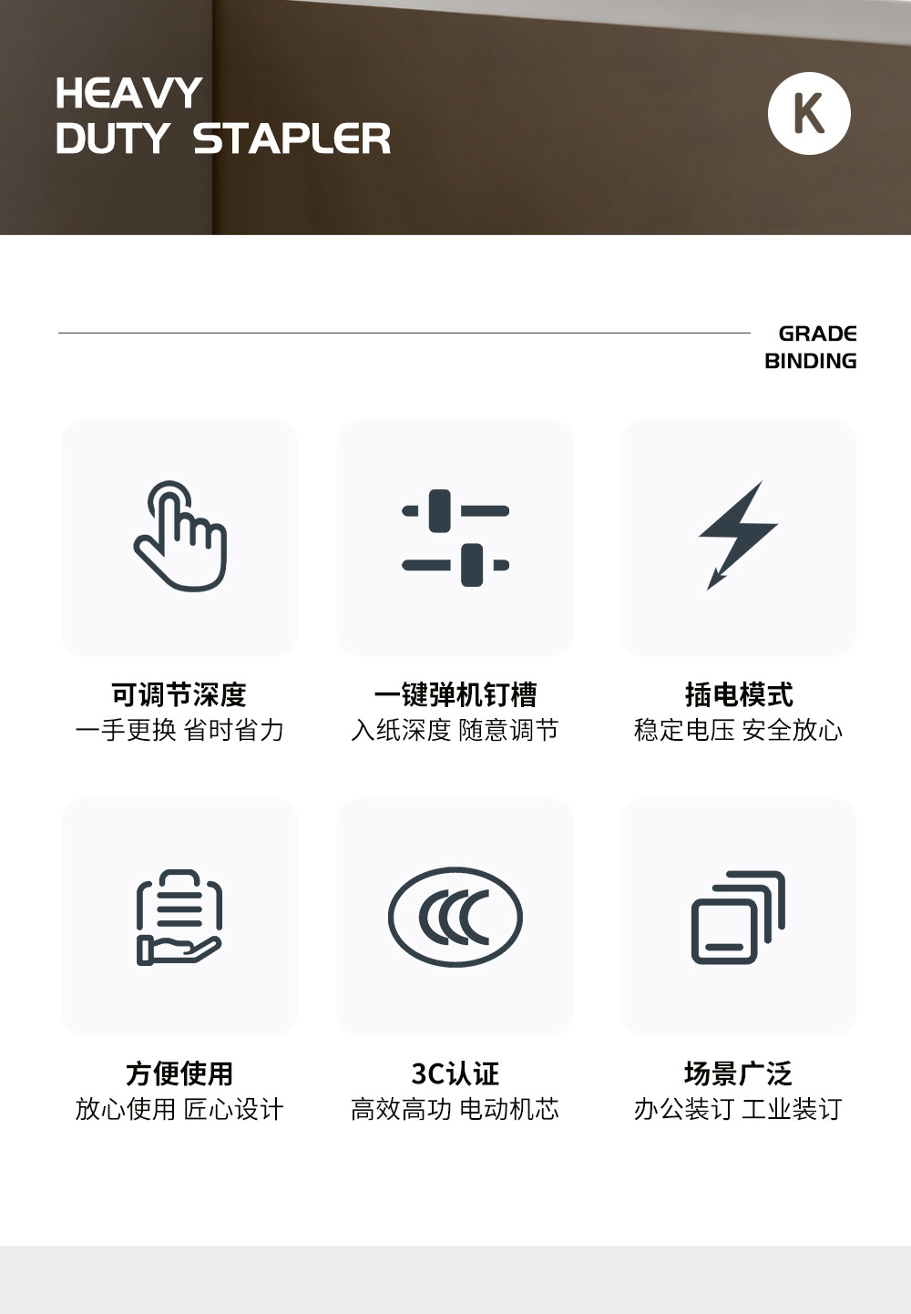 | Especificaciones | Grapadora manual de doble extremo, grapadora eléctrica de doble extremo, grapadora eléctrica de un solo extremo |