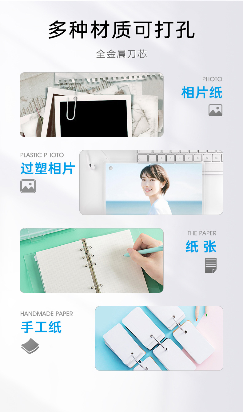 Puedes conseguir una perforadora de agujeros B5, perforadora de agujeros para encuadernación, mini perforadora de agujeros, perforadora de seis agujeros, perforadora manual para bricolaje.