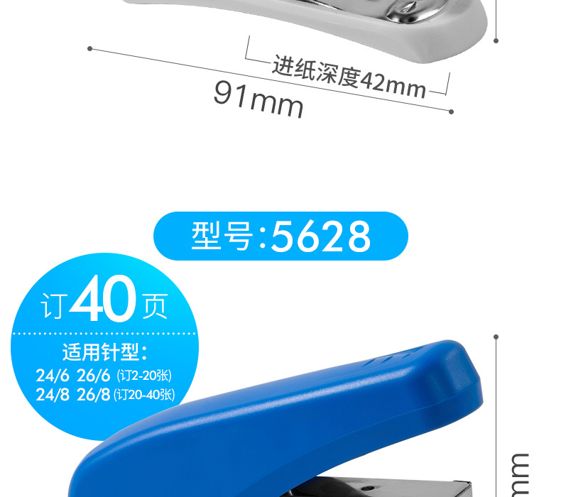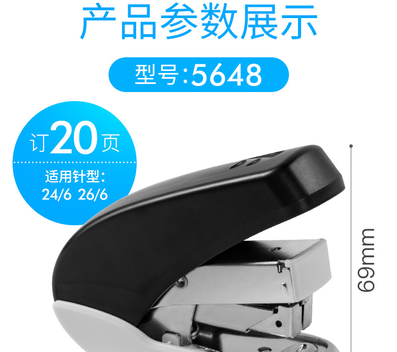 [Fábrica de fuente de suministro] puede personalizar el logotipo del color del paquete de 20 páginas grapadora de ahorro de mano de obra grapadora