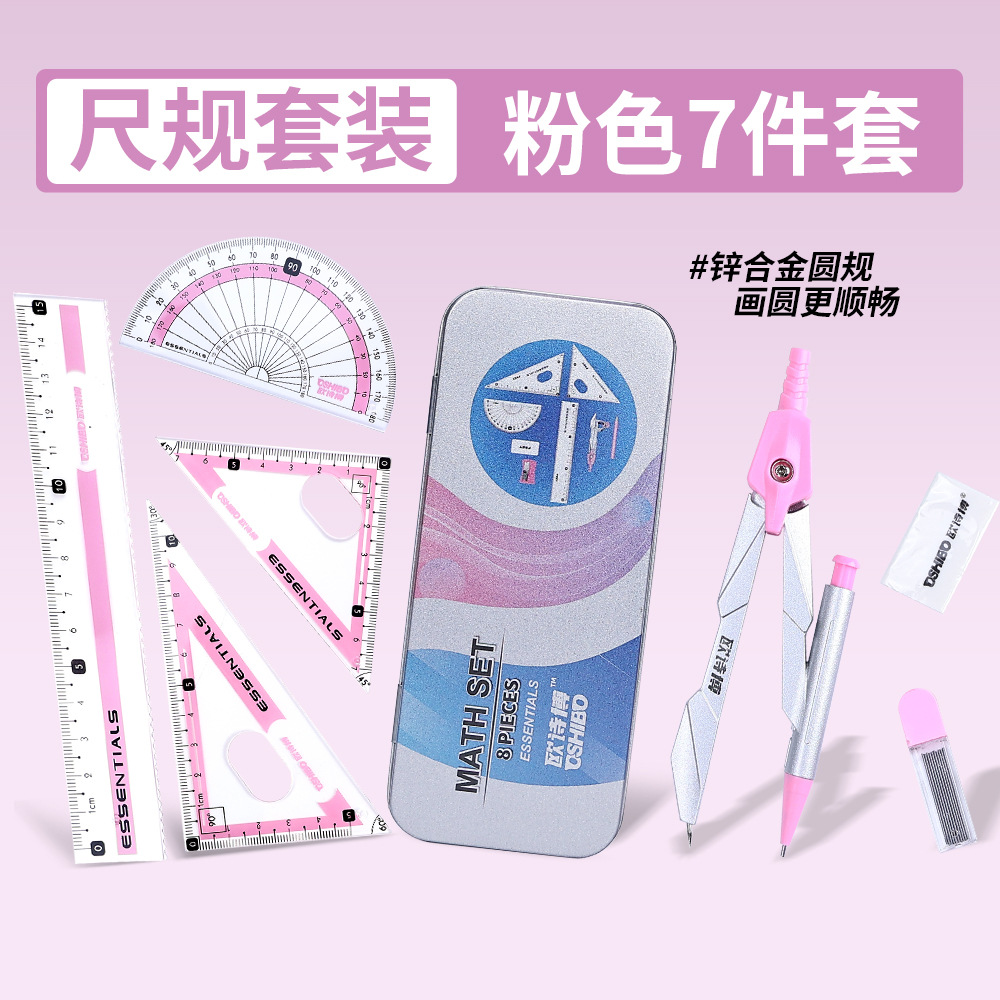 | Especificaciones | Set de siete piezas verde, set de siete piezas azul, set de siete piezas púrpura, set de siete piezas rosa, set de ocho piezas bolígrafo - verde, set de ocho piezas bolígrafo - azul, set de ocho piezas bolígrafo - púrpura, set de ocho piezas bolígrafo - rosa, set de 10 piezas de brújula |