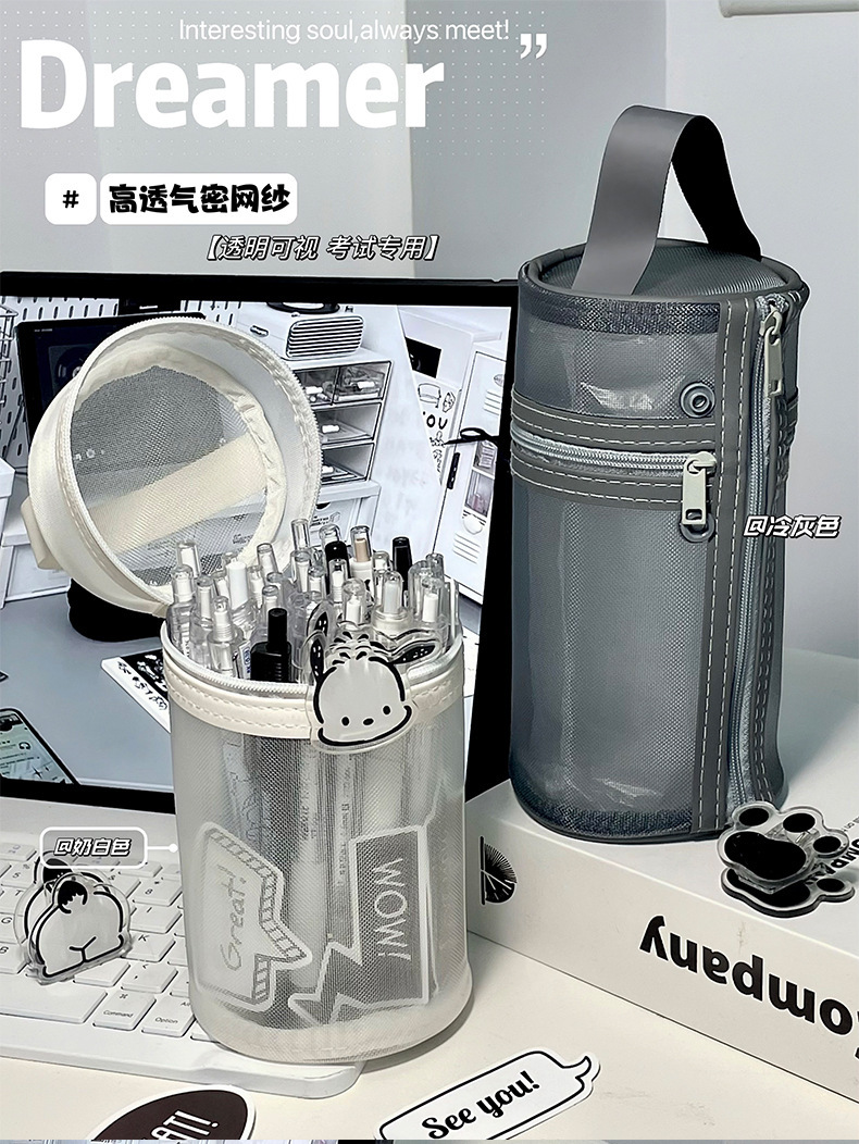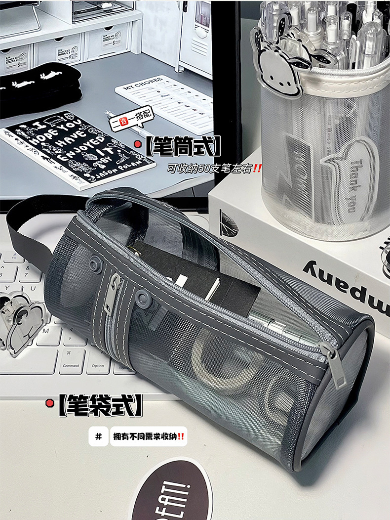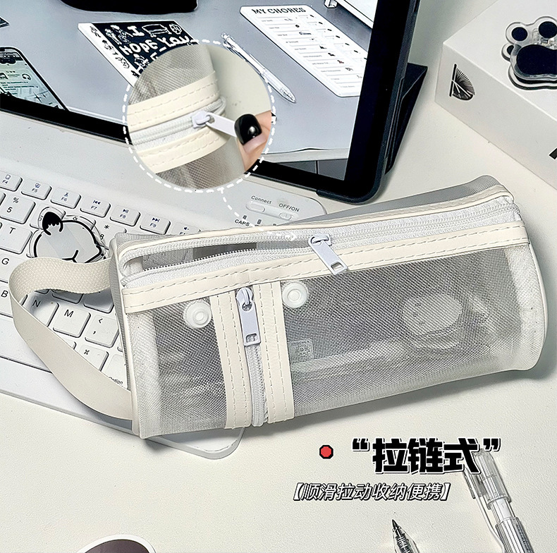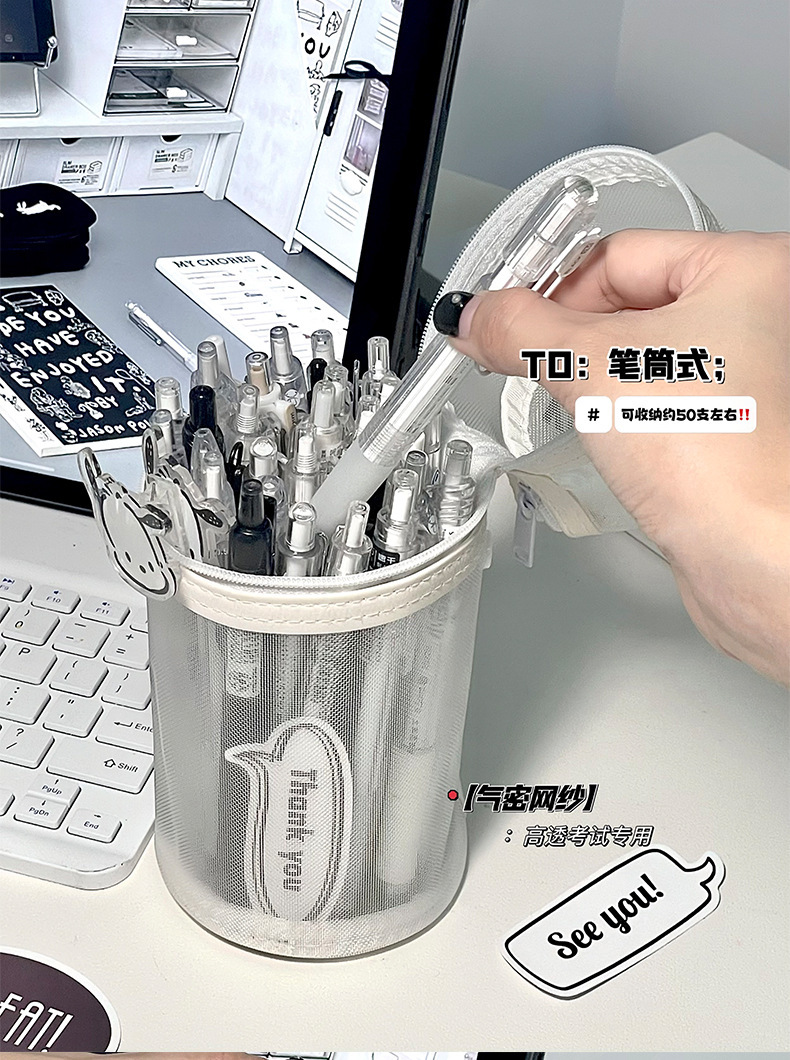Bolsa de lápices de malla, bolsa de papelería para estudiantes de gran capacidad, caja de lápices de estilo ins simple, caja de lápices transparente para exámenes de alto valor