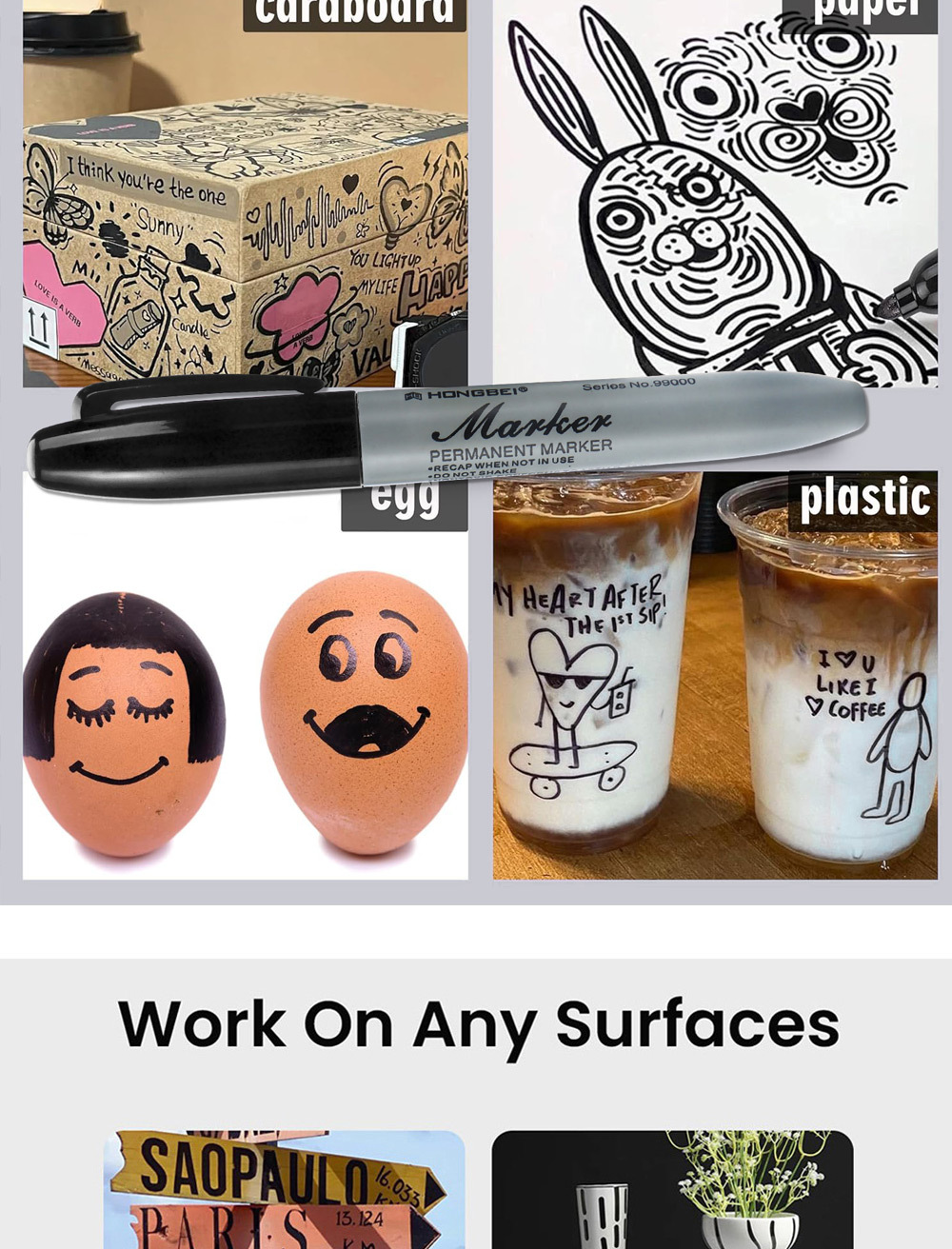 ZEBIFA pequeño marcador de doble cabeza negro pluma de aceite de tinta de secado rápido Gancho marcador