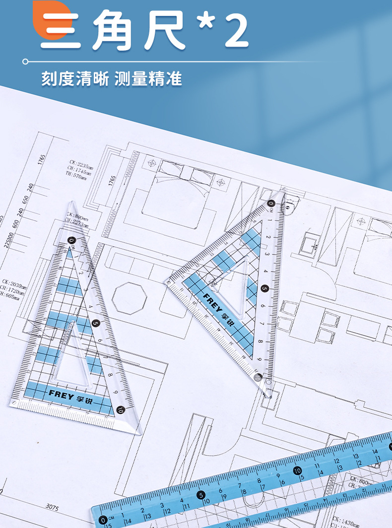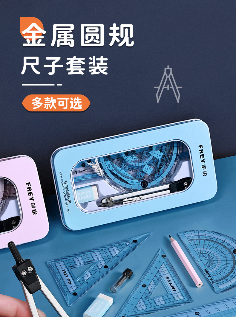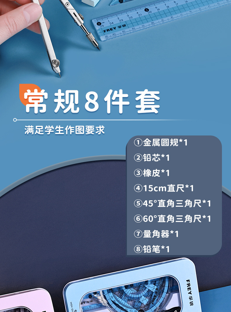 Conjunto de reglas de brújula estudiantes premios materiales de estudio papelería al por mayor examen 8 piezas conjunto de reglas de brújula rectas reglas triangulares