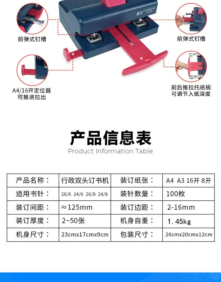 | Especificaciones | Doble cabeza Stapler |