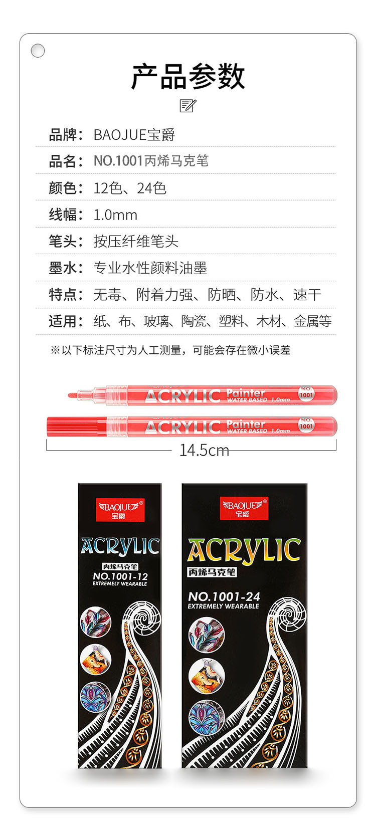 Baoke 550 pintura metálica pluma marcador de oro plata tarjeta de felicitación título DIY álbum artesanía pluma papelería