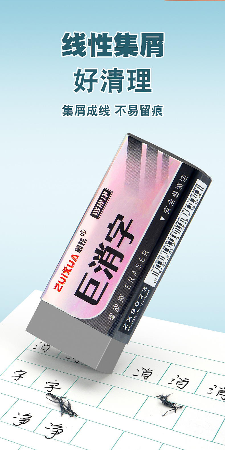 | Especificaciones | Ente aleatorio de un solo bloque de dos colores,Una goma de borrar una caja de lápices (2B),Una goma de borrar una caja de lápices (HB) |