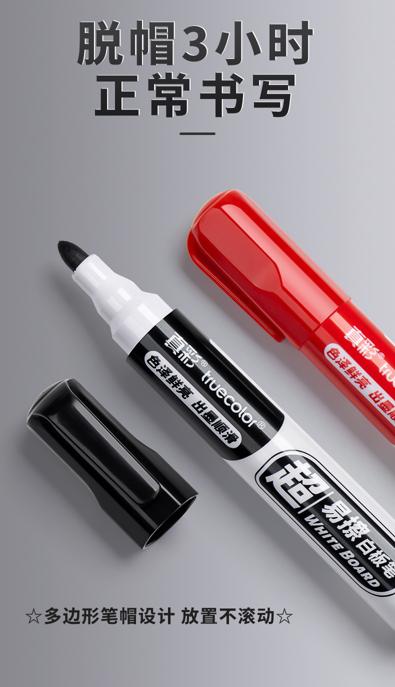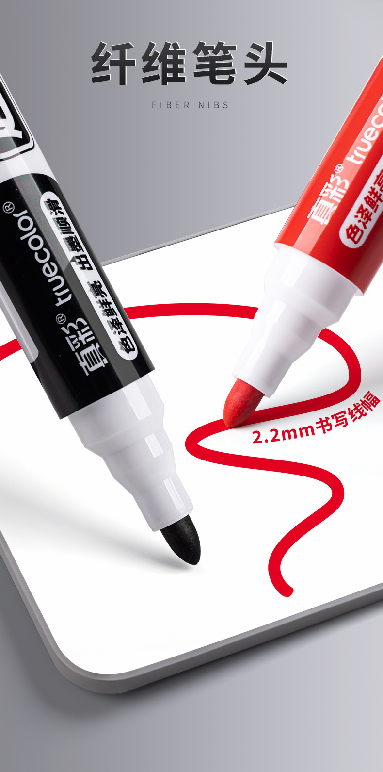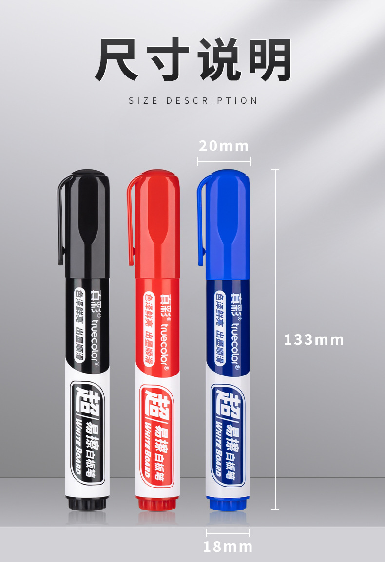 True Color 0996 Pluma de pizarra borrable Pluma de agua de pizarra Pluma de marcado negro a base de agua borrable Cabeza gruesa de tablero de dibujo rojo del maestro