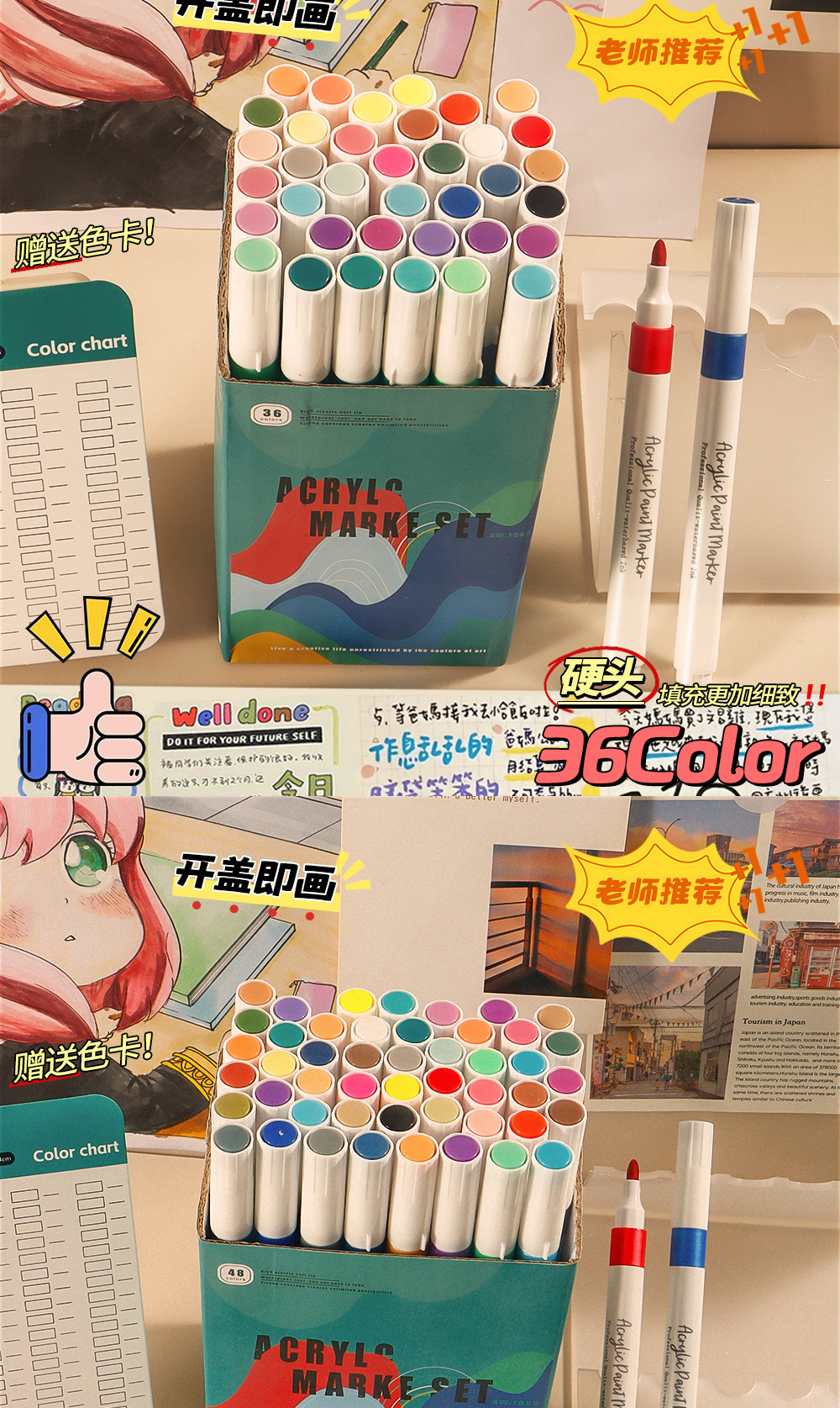 Impermeable de secado rápido marcador de acrílico estudiante arte pintura 48 color acrílico pluma multiusos pintura pluma al por mayor