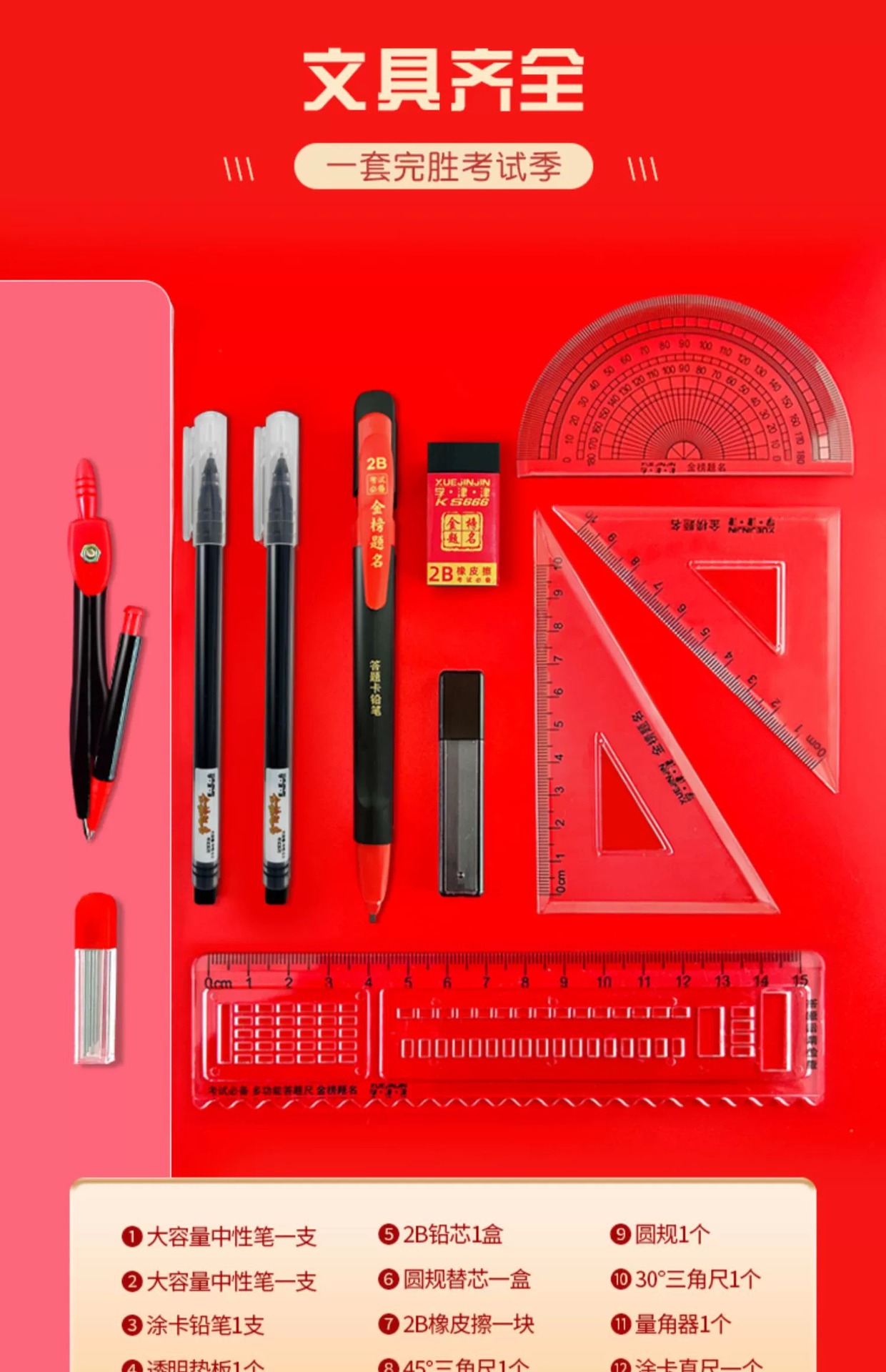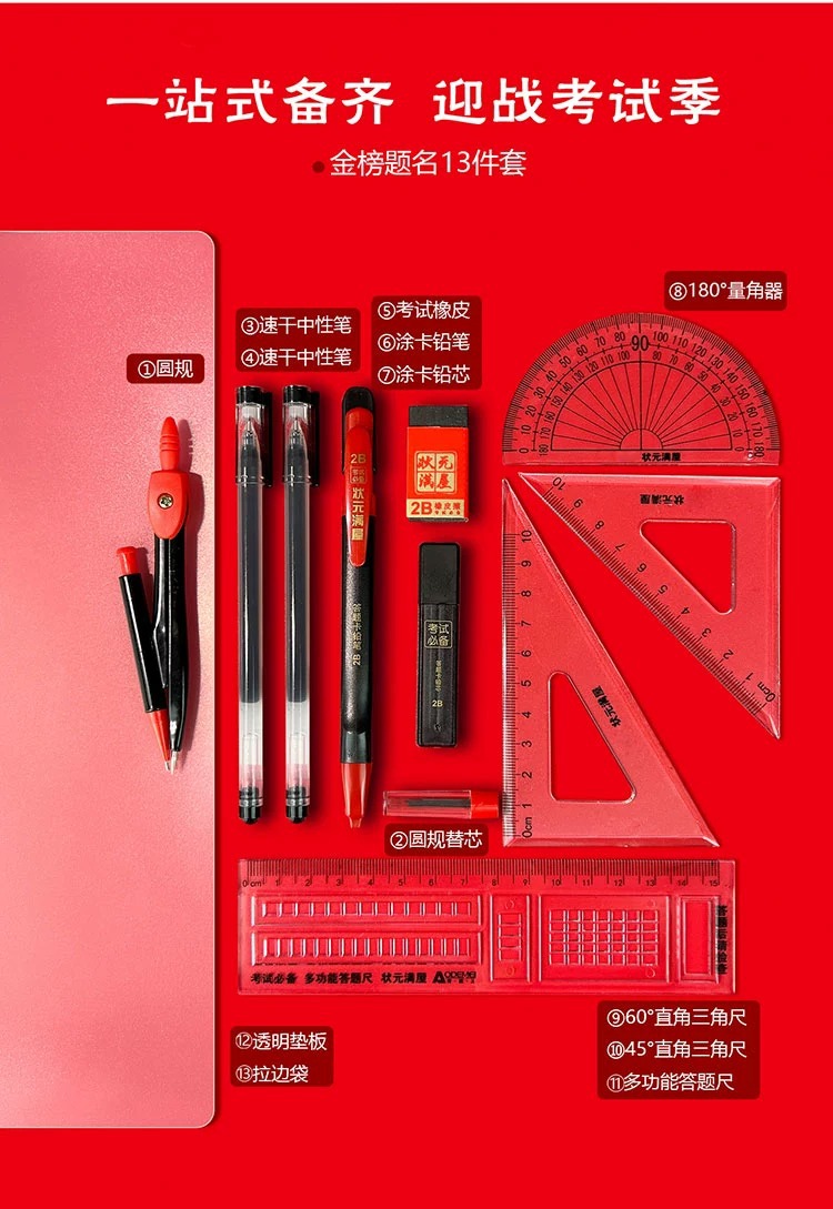 Conjunto de reglas de brújula estudiantes premios materiales de estudio papelería al por mayor examen 8 piezas conjunto de reglas de brújula rectas reglas triangulares