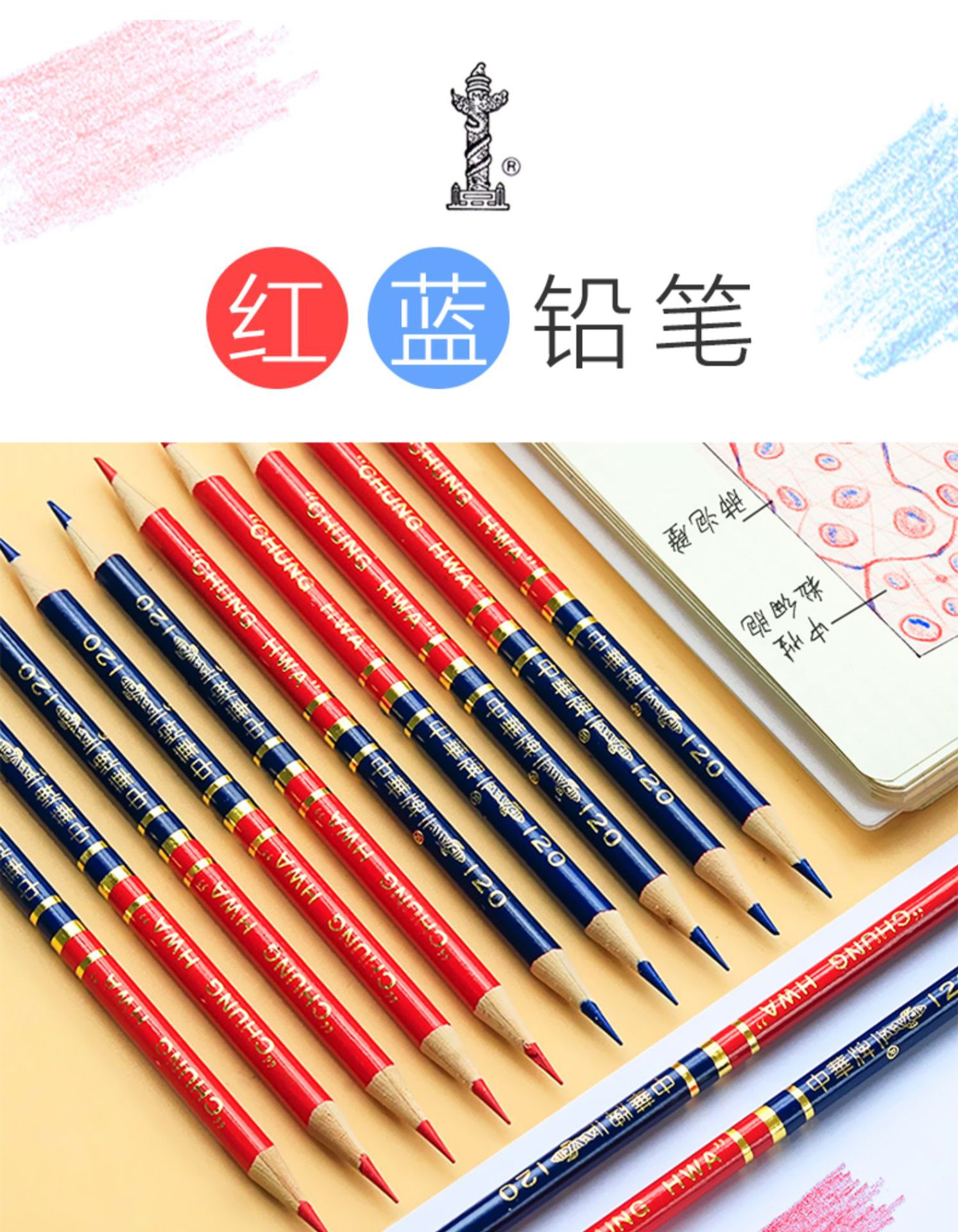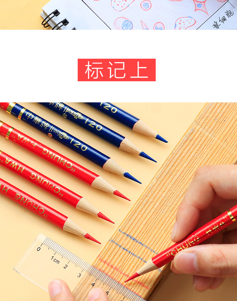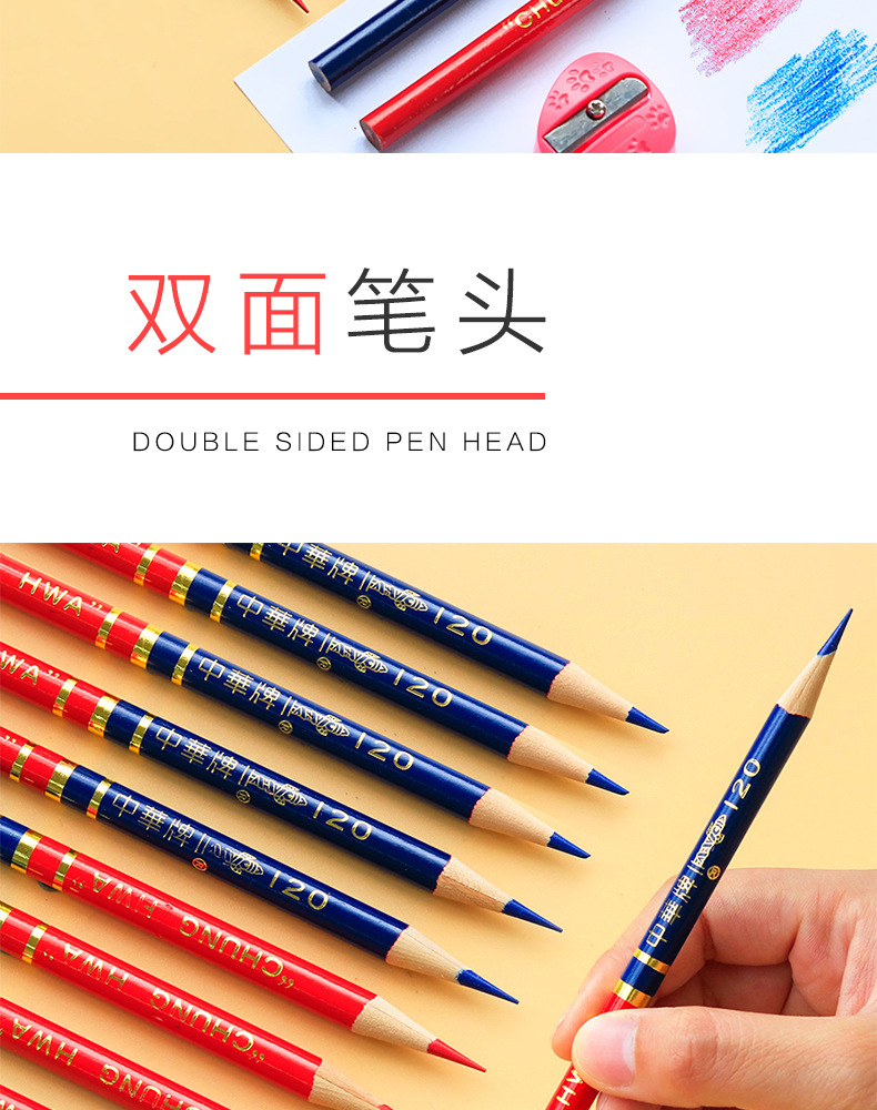 Marca China rojo y azul lápiz de dos colores lápiz especial médico dibujo y escritura carpintería enfermera marca especial Doble