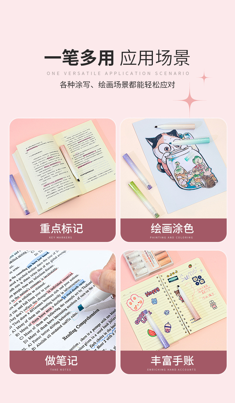 Resaltador creativo de color apilado de dos cabezas, marcador de color para estudiantes, marcador de marcado de gran capacidad, bolígrafo de cuenta manual de alto valor
