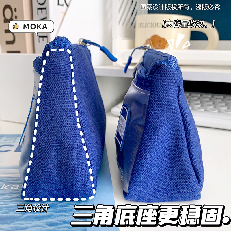 Klein azul triángulo bolsas de lápiz de alta capacidad caja de papelería resistente a la suciedad nicho bolsas de lápiz de viento simple