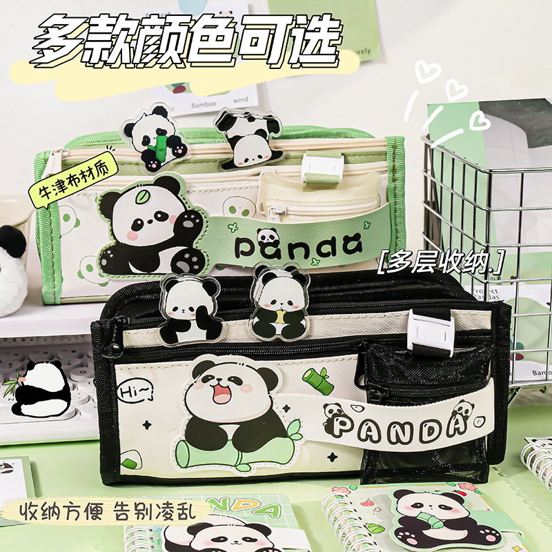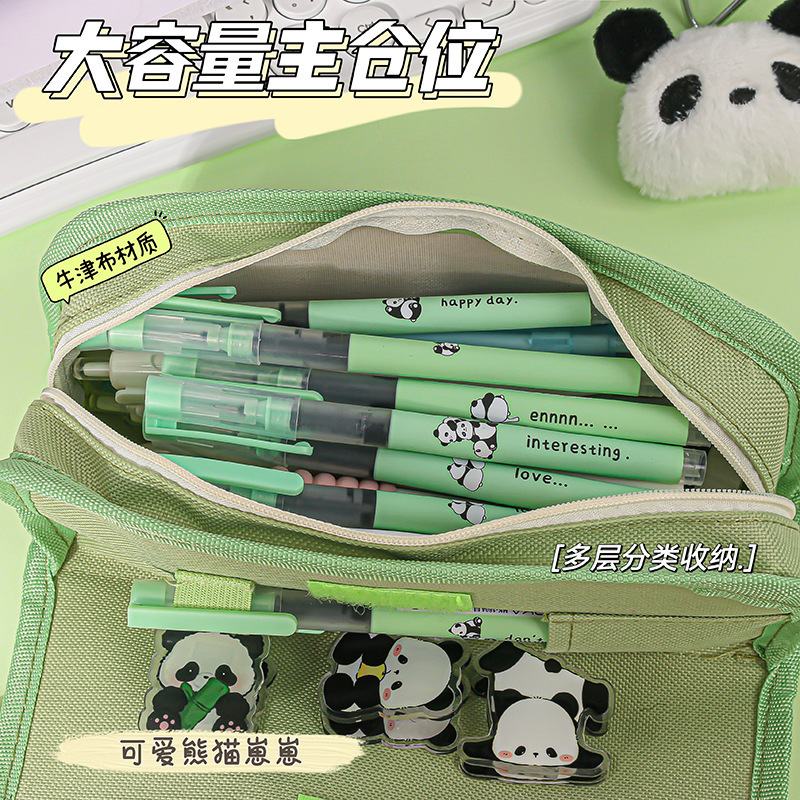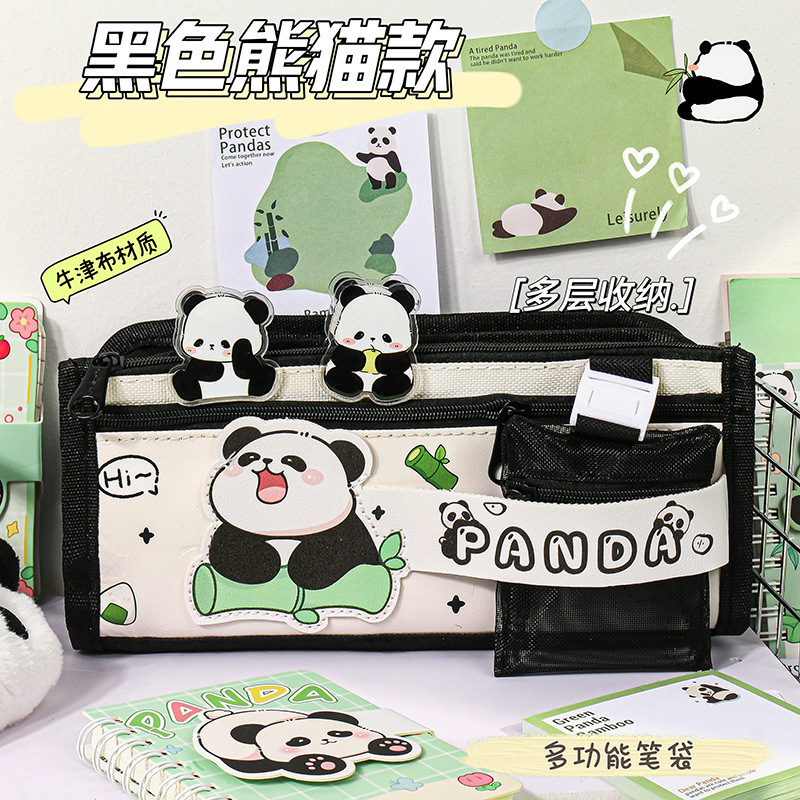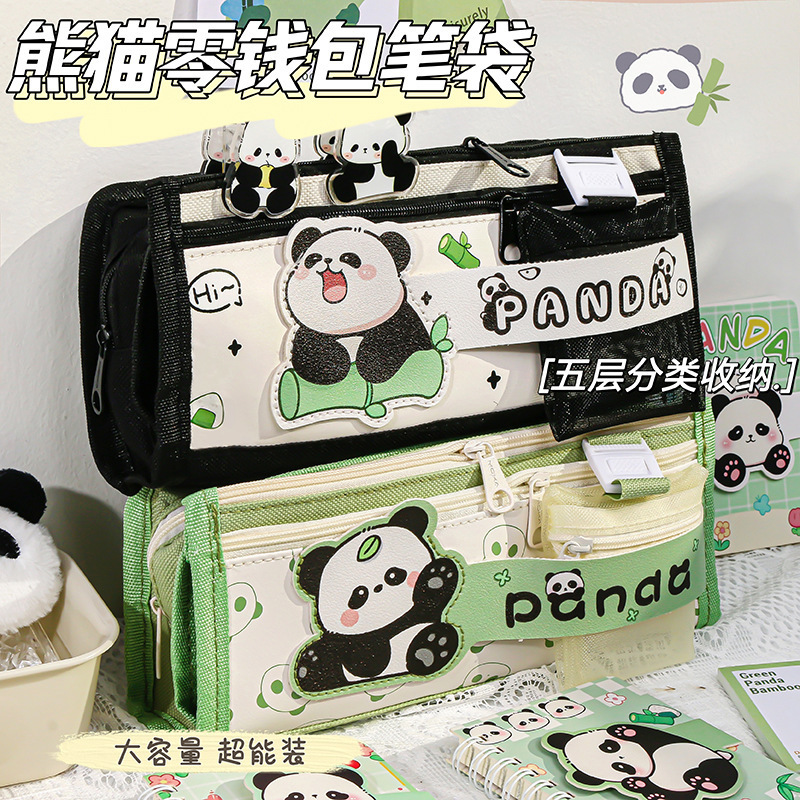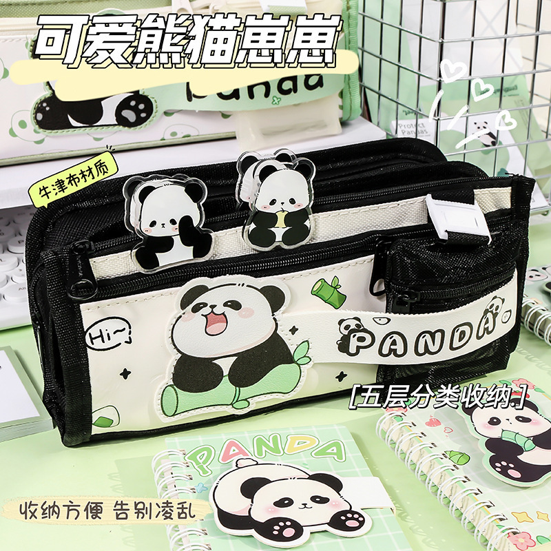 Bolsa de lápiz de dibujos animados panda en caja de papelería de alta capacidad de alto valor facial bolsas de lápiz de nicho resistentes a la suciedad cajas de lápiz de estudiantes primarios