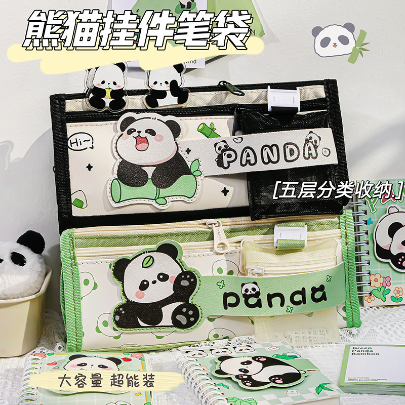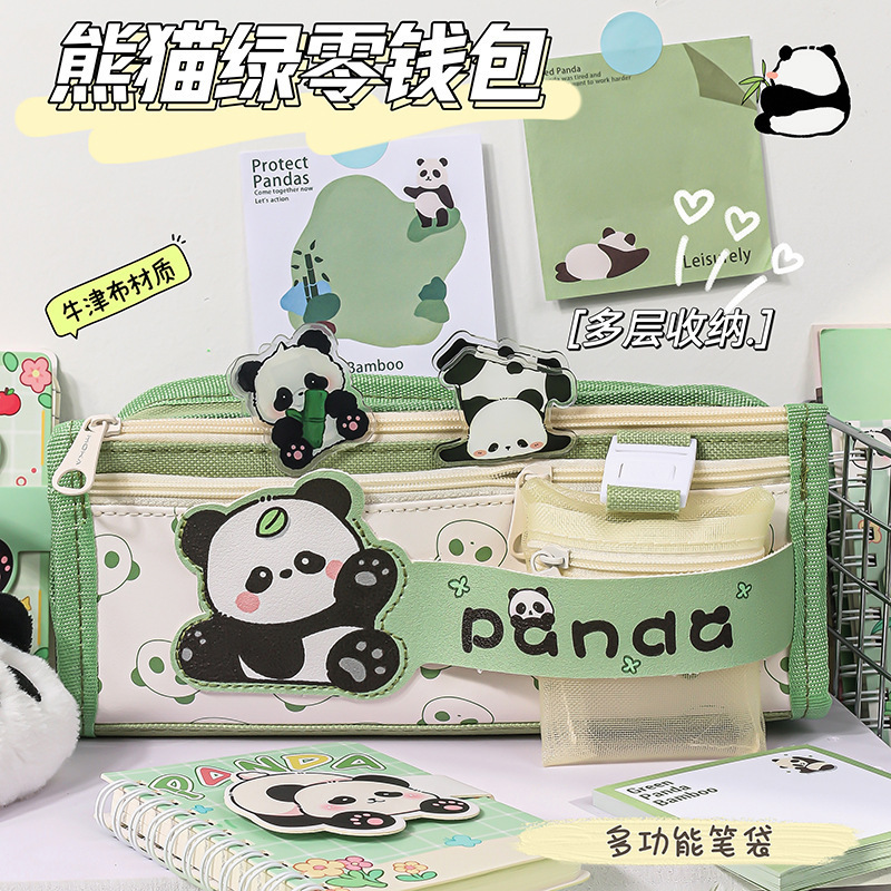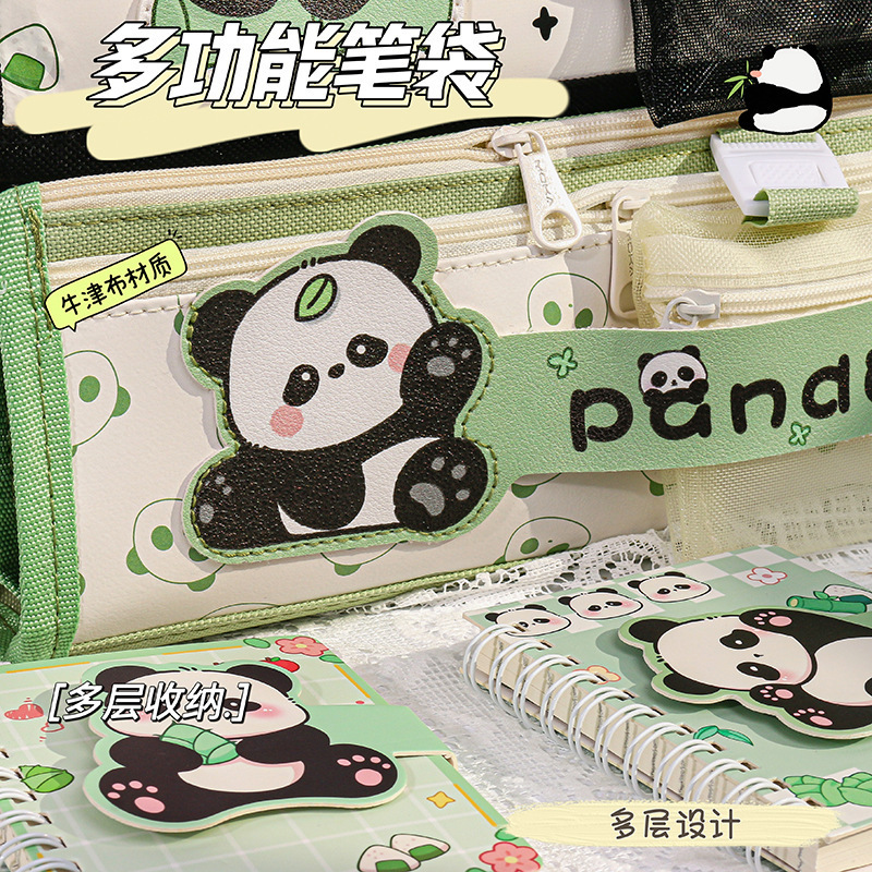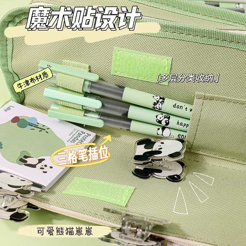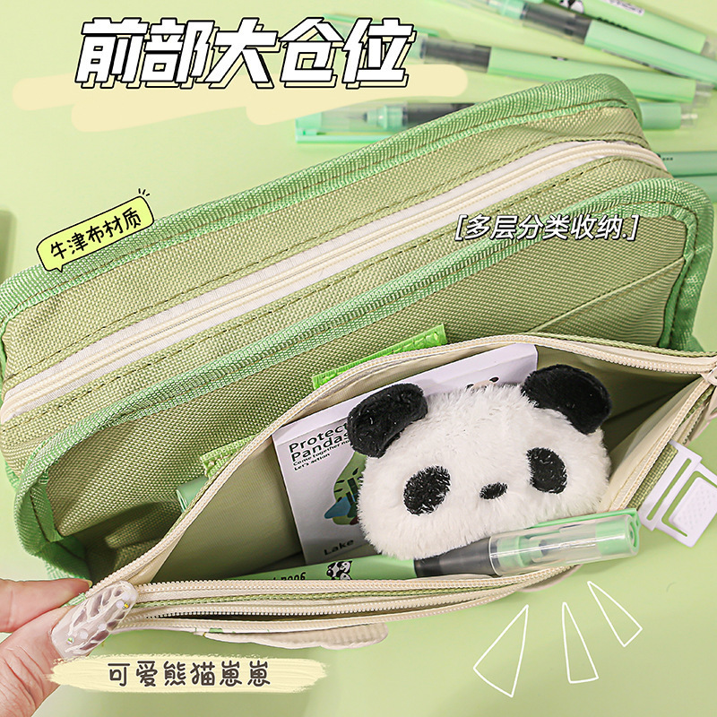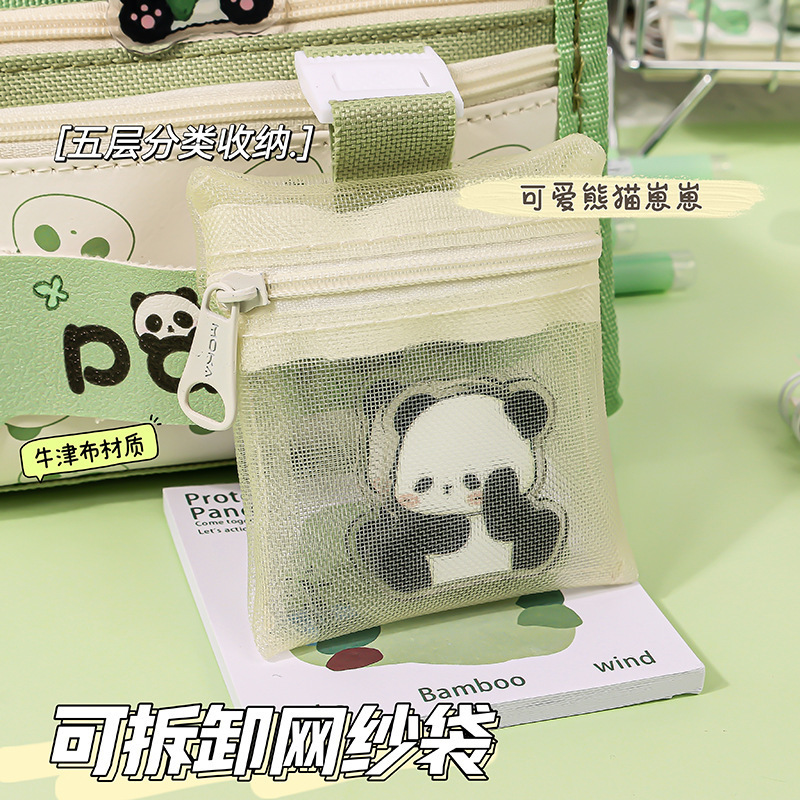 Bolsa de lápiz de dibujos animados panda en caja de papelería de alta capacidad de alto valor facial bolsas de lápiz de nicho resistentes a la suciedad cajas de lápiz de estudiantes primarios