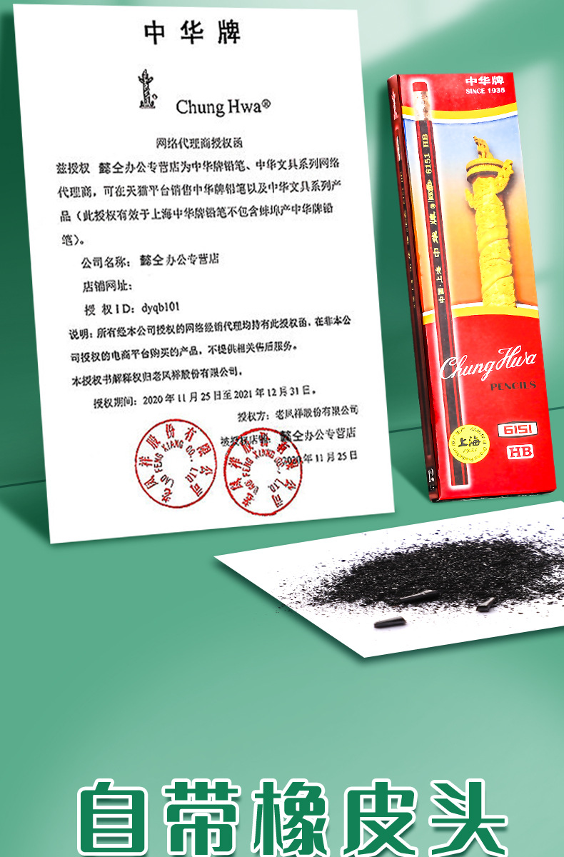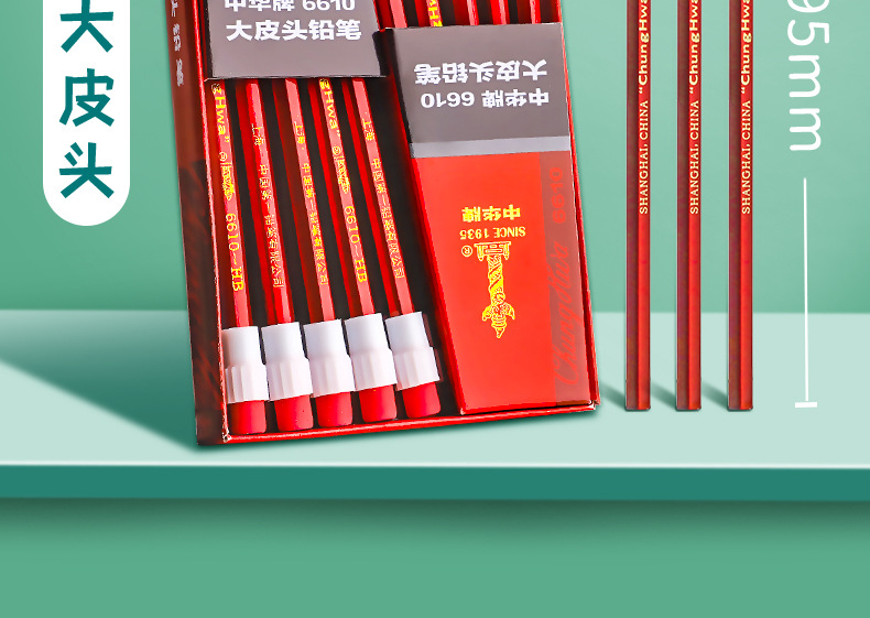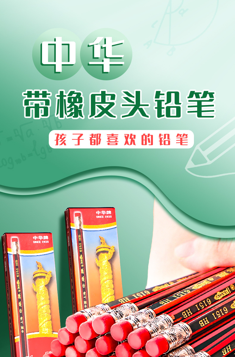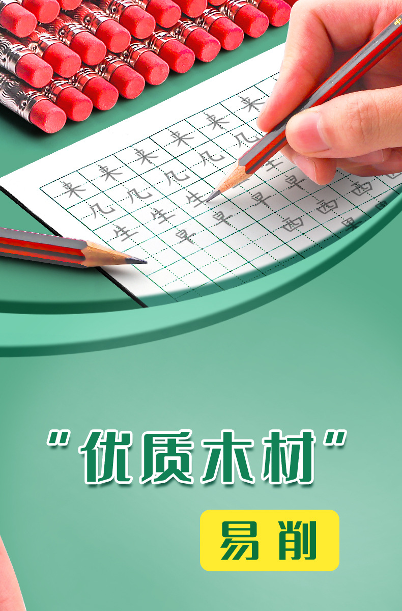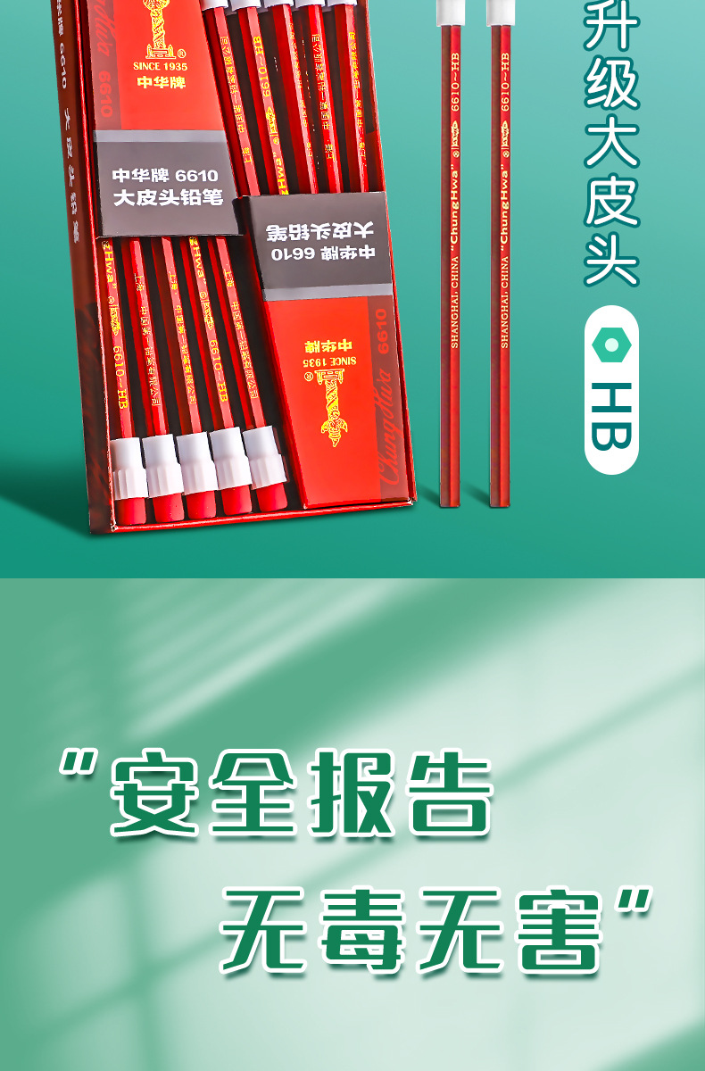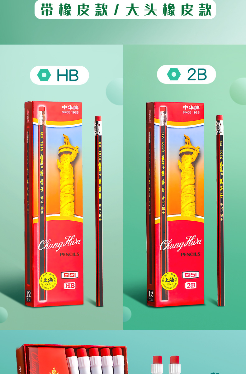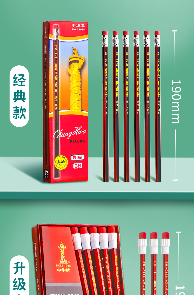 Lápiz hb de la marca Zhonghua para estudiantes de primaria 2b Examen sin plomo para niños de primer y segundo grado con cabeza de goma de borrar