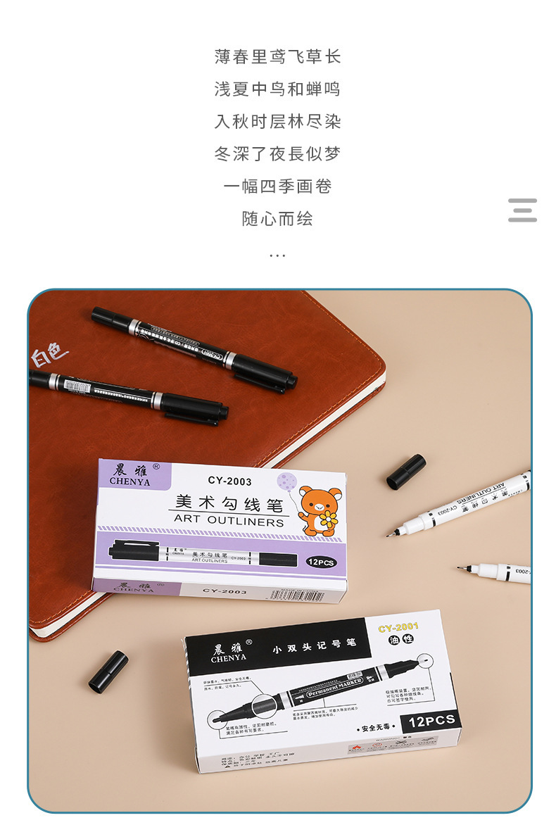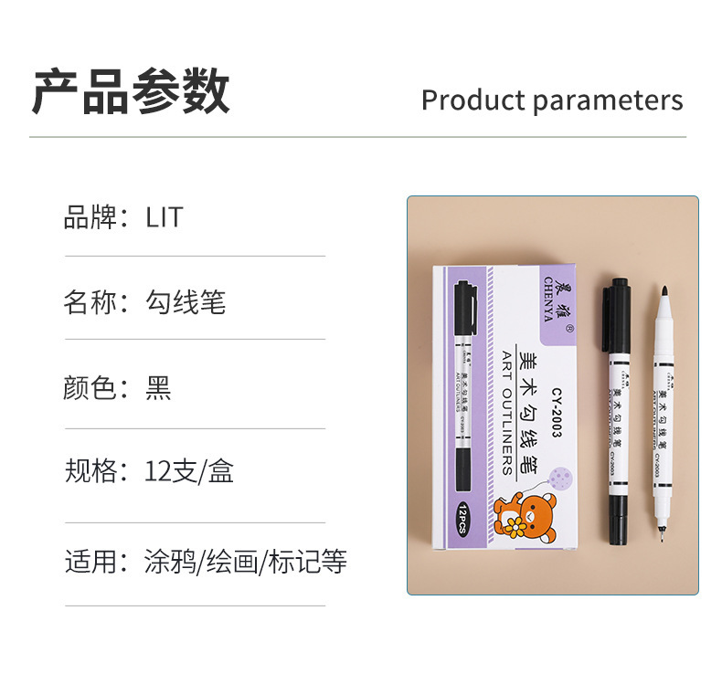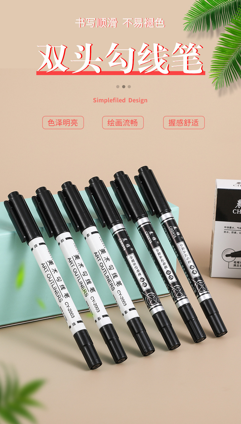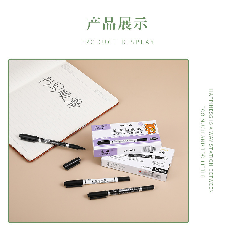 Gran capacidad de arte pluma gancho negro bosquejo pintura al óleo pluma de dibujo de secado rápido pintura sin decoloración pluma marcador