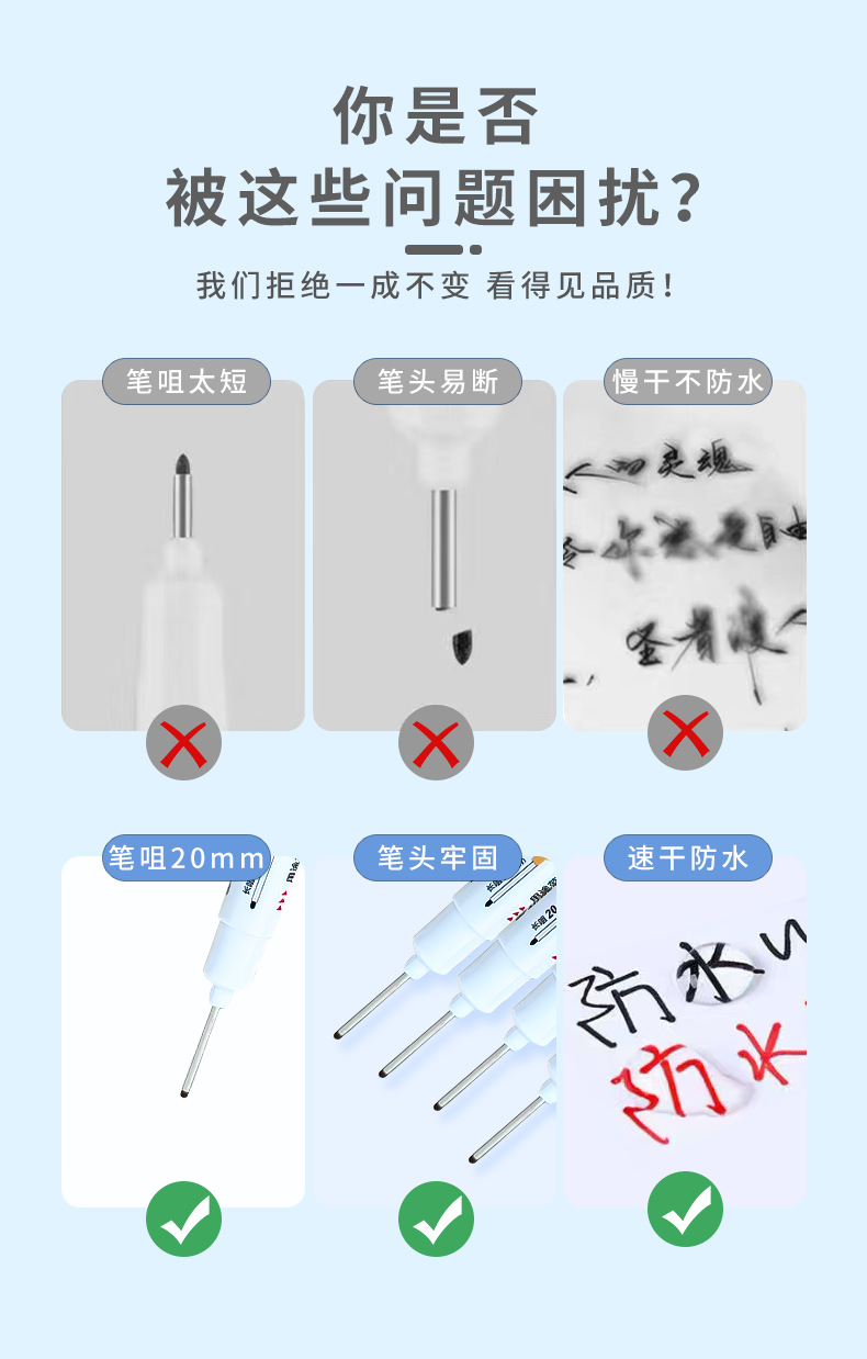 Carpintería profunda boca marcado pluma baño instalación azulejo dibujo línea grasa cabeza larga marcado pluma propósito especial marcado pluma