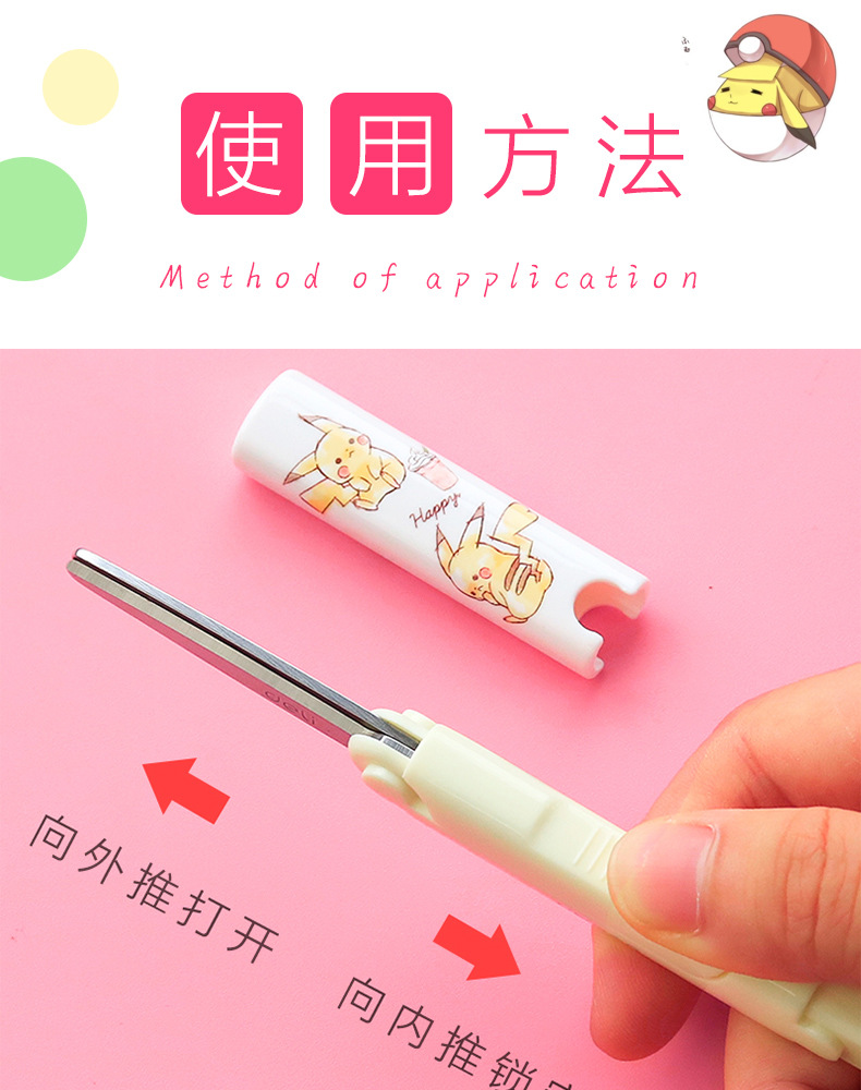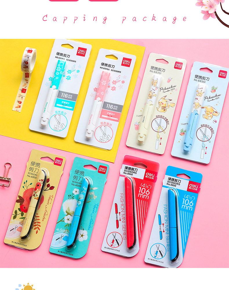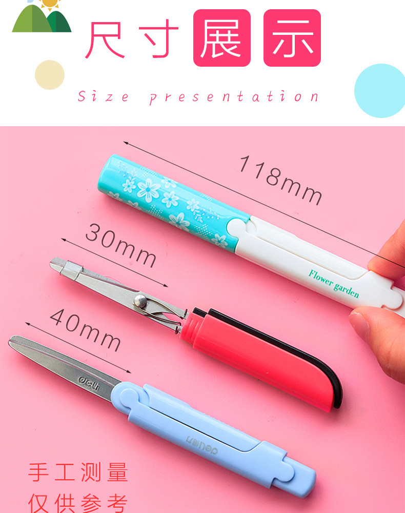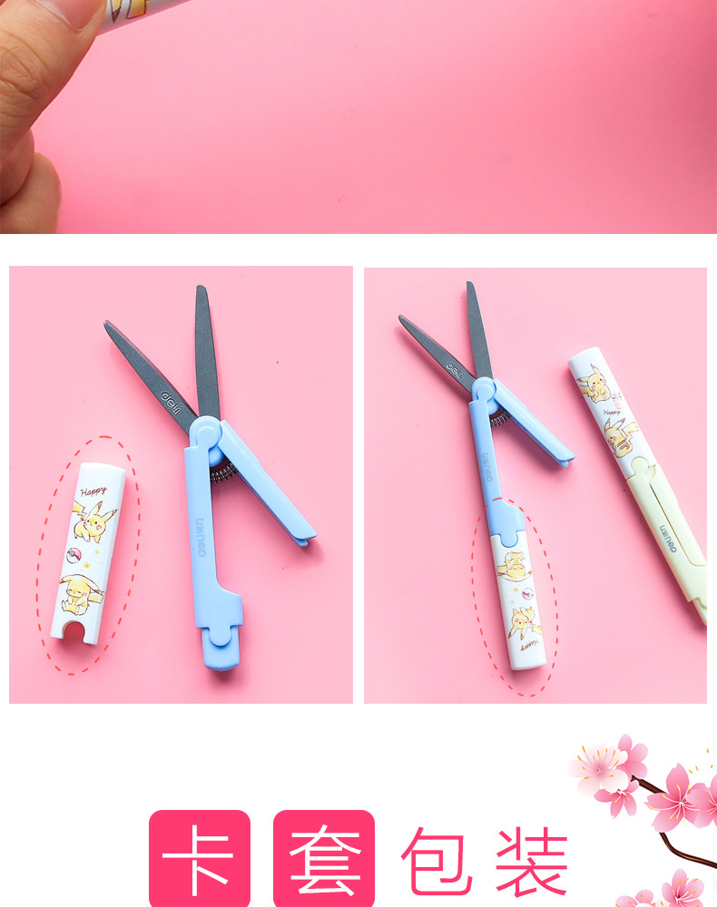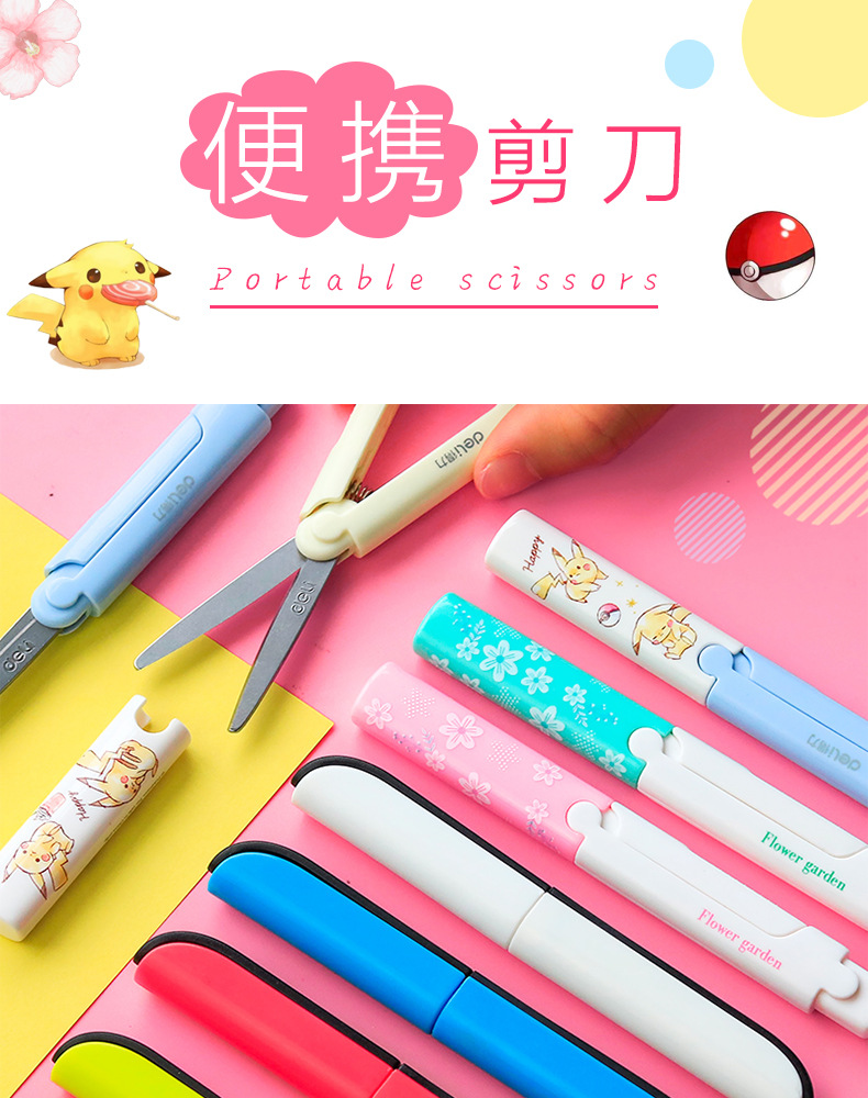 Deli portátil tijeras pequeñas creativo tamaño pequeño plegable en forma de pluma portátil tijeras de cabeza redonda para niños y estudiantes