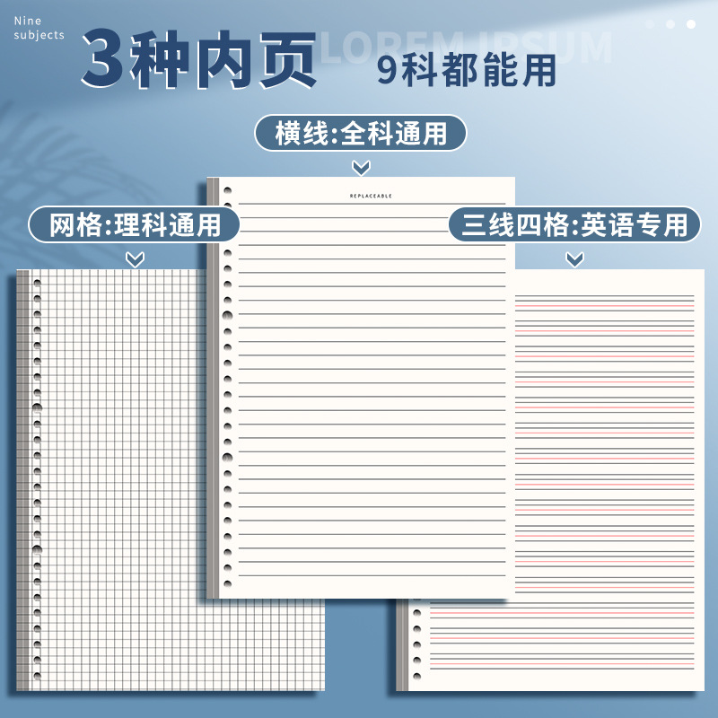 | Color de la portada | Chino / 1, matemáticas / 1, inglés / 1, historia / 1, política / 1, geografía / 1, física / 1, química / 1, biología / 1, núcleo transversal, núcleo de red, núcleo inglés |