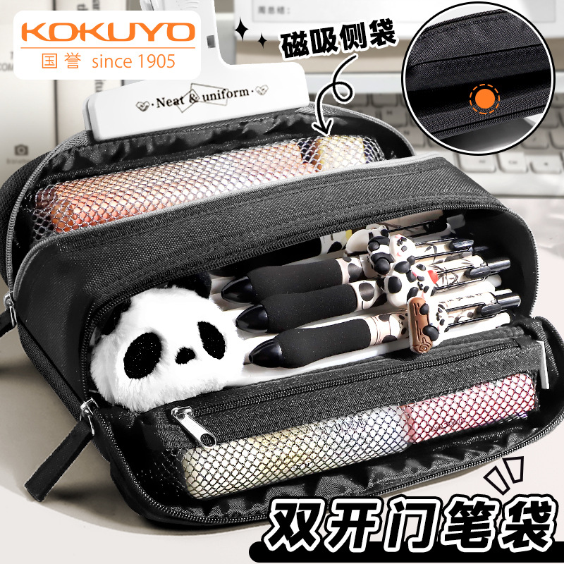 Kokuyo de Japón, bolsa de lápices multifuncional HACO, bolsa de almacenamiento de múltiples capas simple y de gran capacidad para estudiantes, puede estar de pie