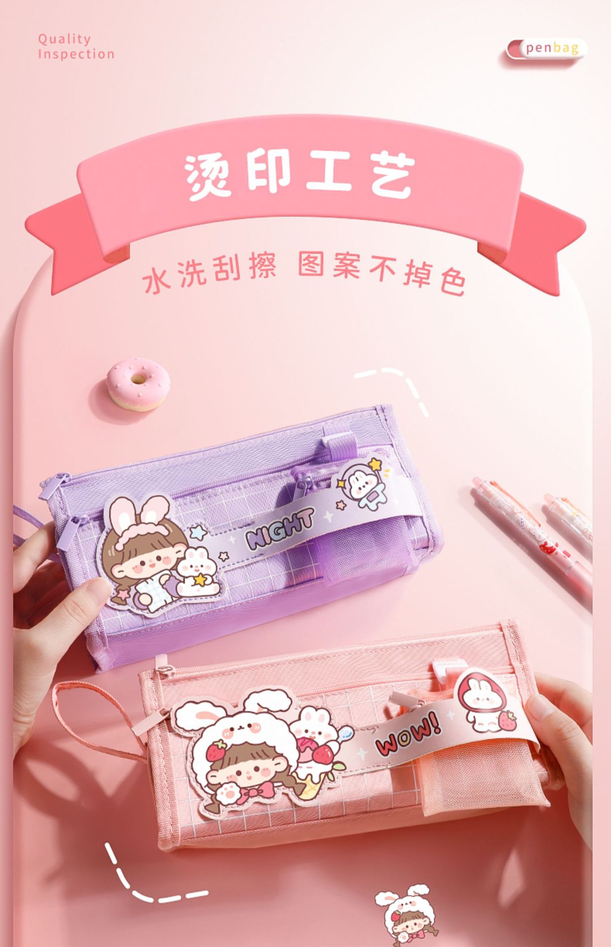 Estuche para lápices portátil para estudiantes, bolso de almacenamiento de gran capacidad de dibujos animados transparente, bolso de papelería simple multifuncional impermeable lindo