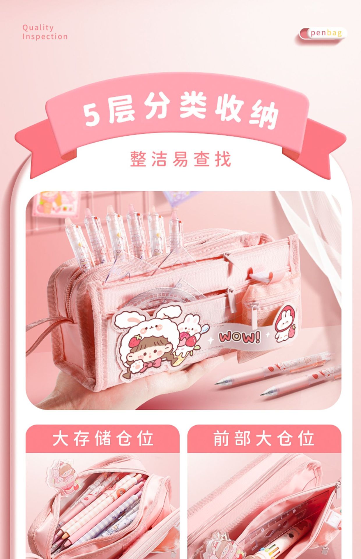 Caja de lápices de lona multifuncional ins caja de lápices escolar de alta apariencia caja de papelería de múltiples capas bolsa de papelería de estudiante de escuela primaria transfronteriza