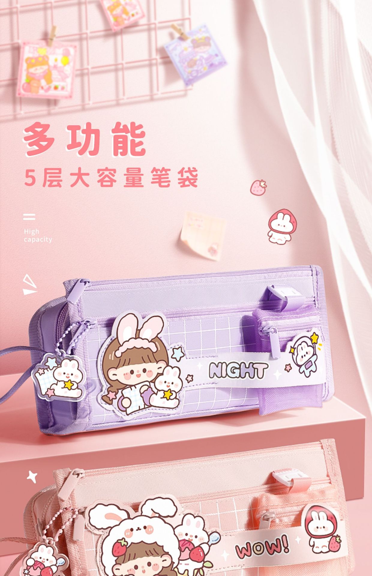 Caja de lápiz Capibara ventas nacionales de comercio exterior caja de papelería adorable estudiantes de primaria de alto valor de cremallera multicapa caja de lápiz bolsas