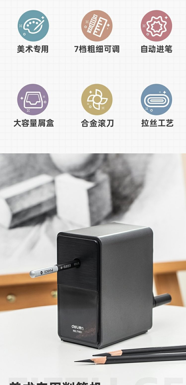 Deli 71161 sacapuntas especial para dibujo Sacapuntas de lápiz estudiante sacapuntas a mano sacapuntas taladro Sacapuntas de lápiz