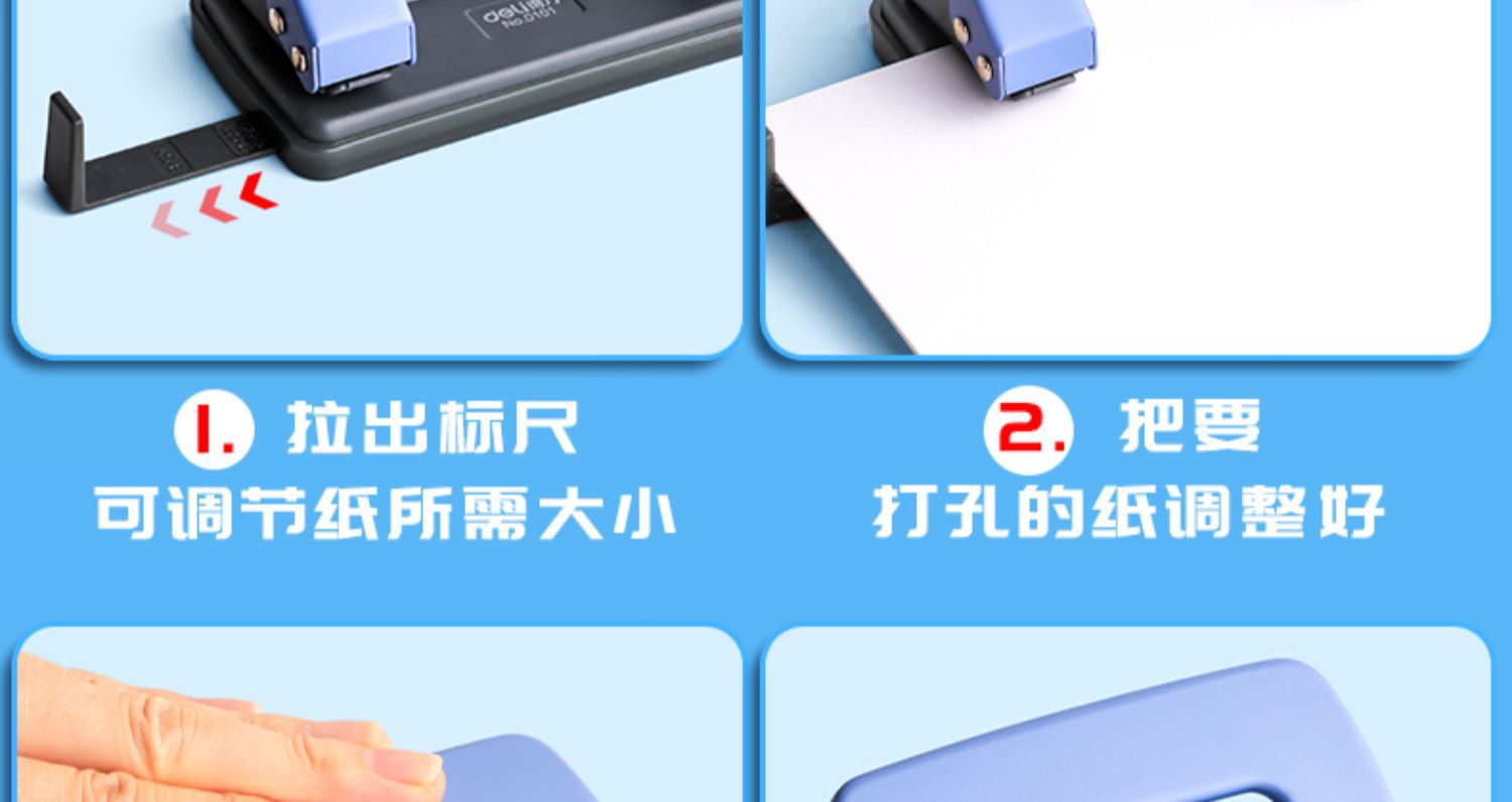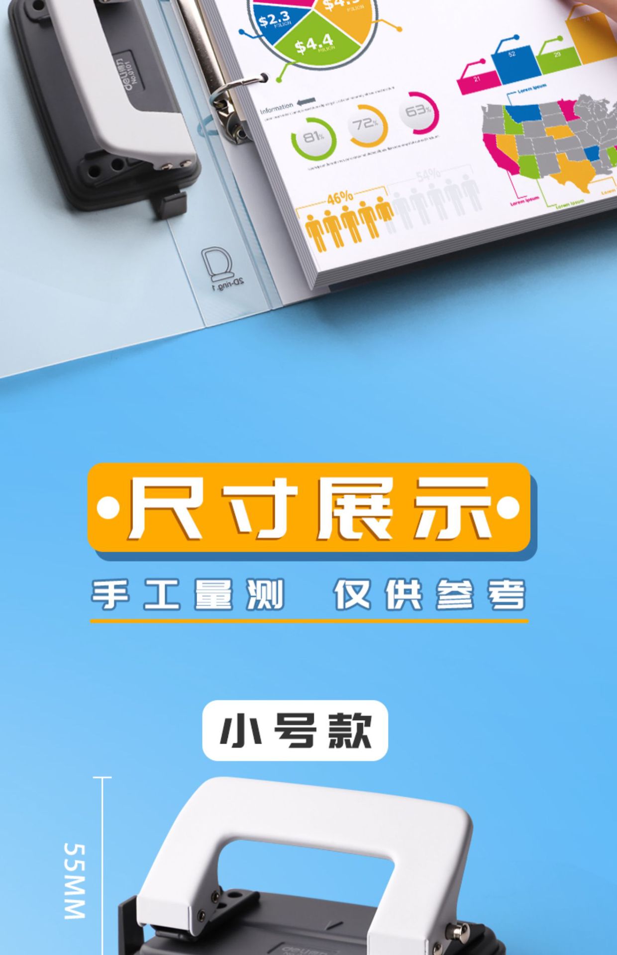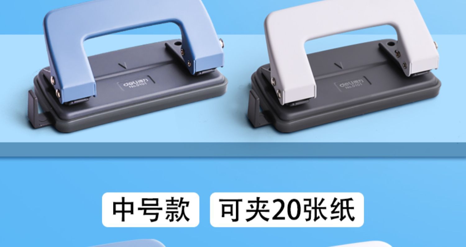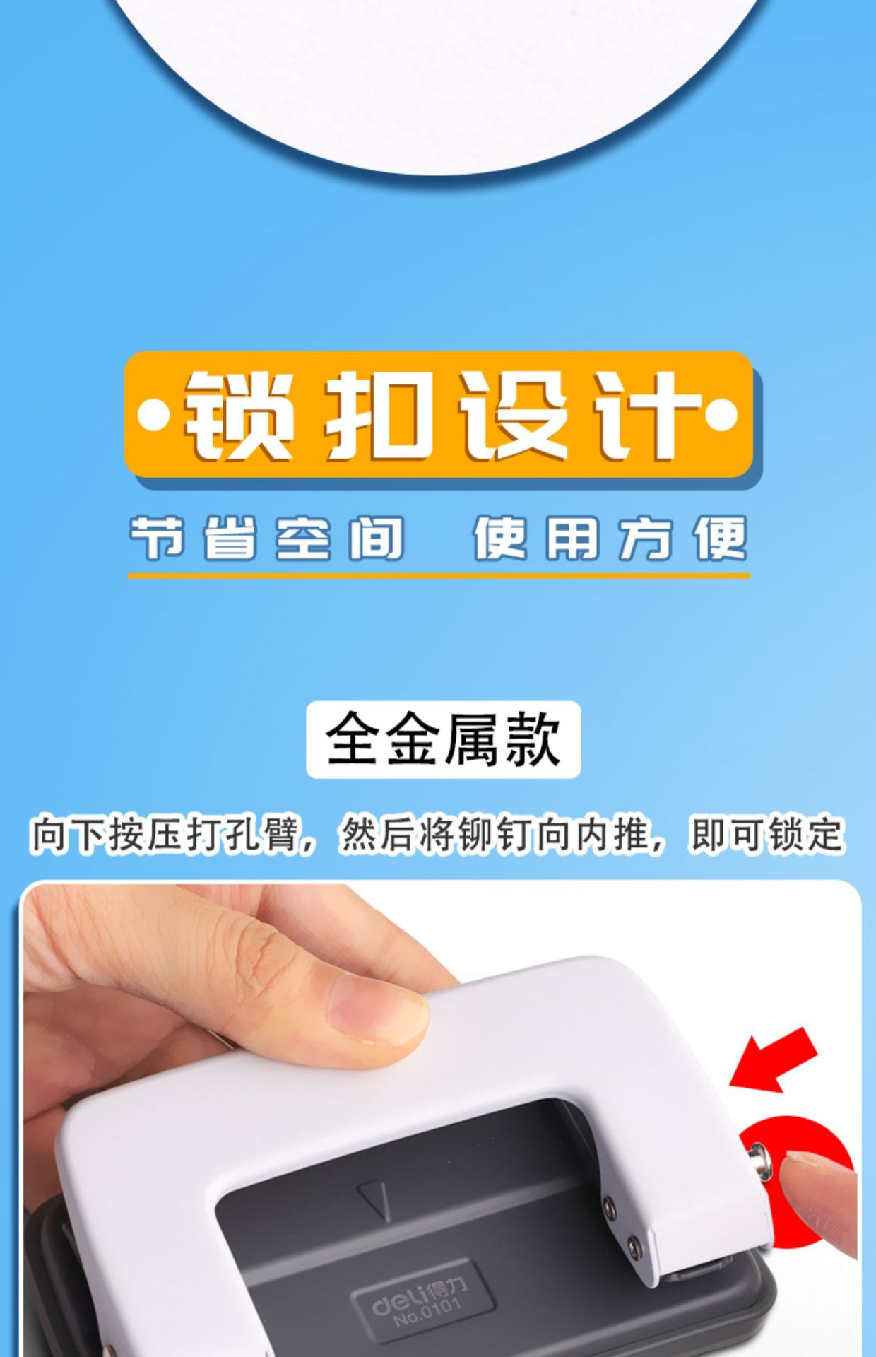 Deli puncher de doble agujero pequeño puncher máquina de encuadernación libro de hojas sueltas anillo de clip de hojas sueltas puncher manual de dos agujeros