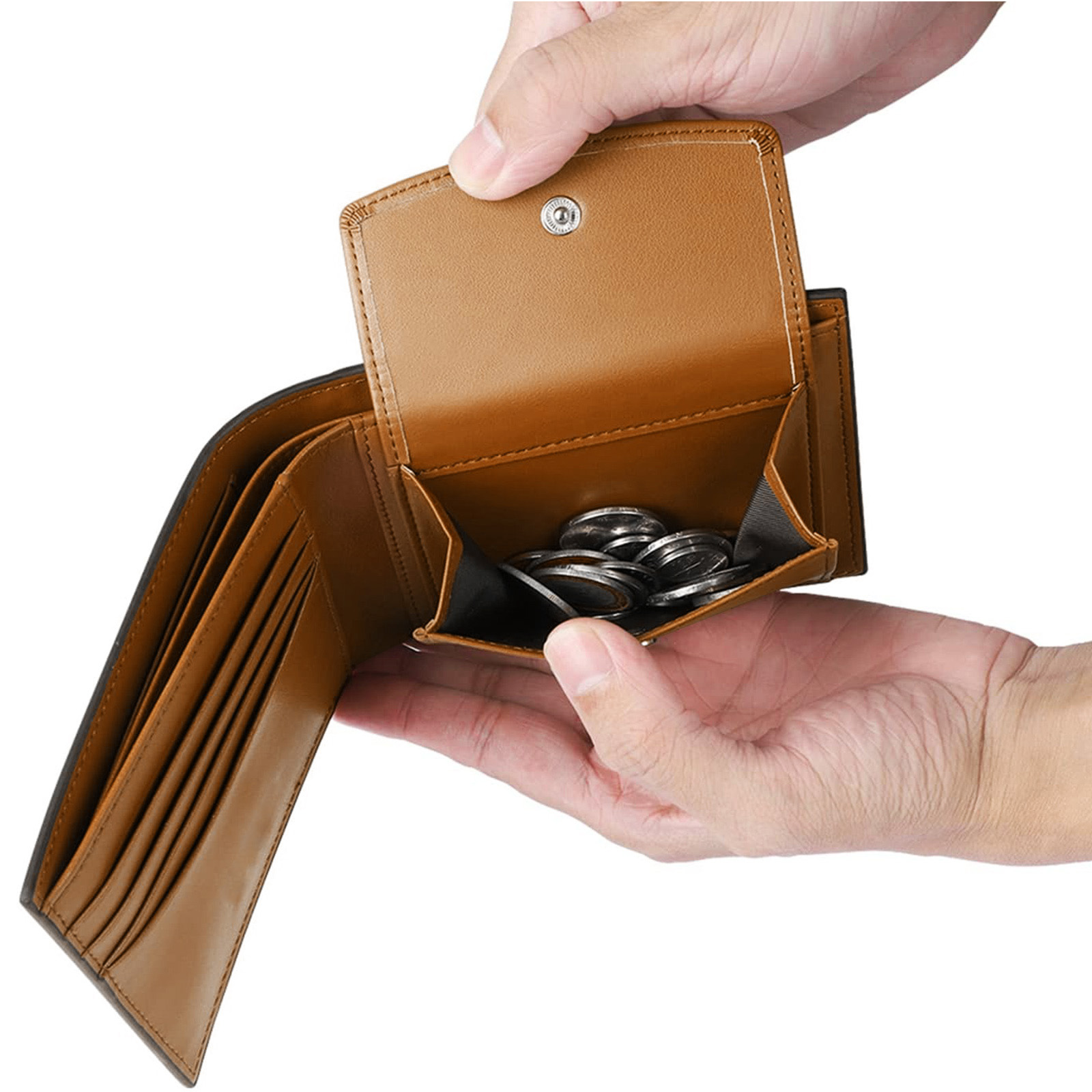 Cartera de negocios Rakuten de estilo japonés personalizada, multifuncional, con monedero, billetera de cuero genuino de doble pliegue para hombre