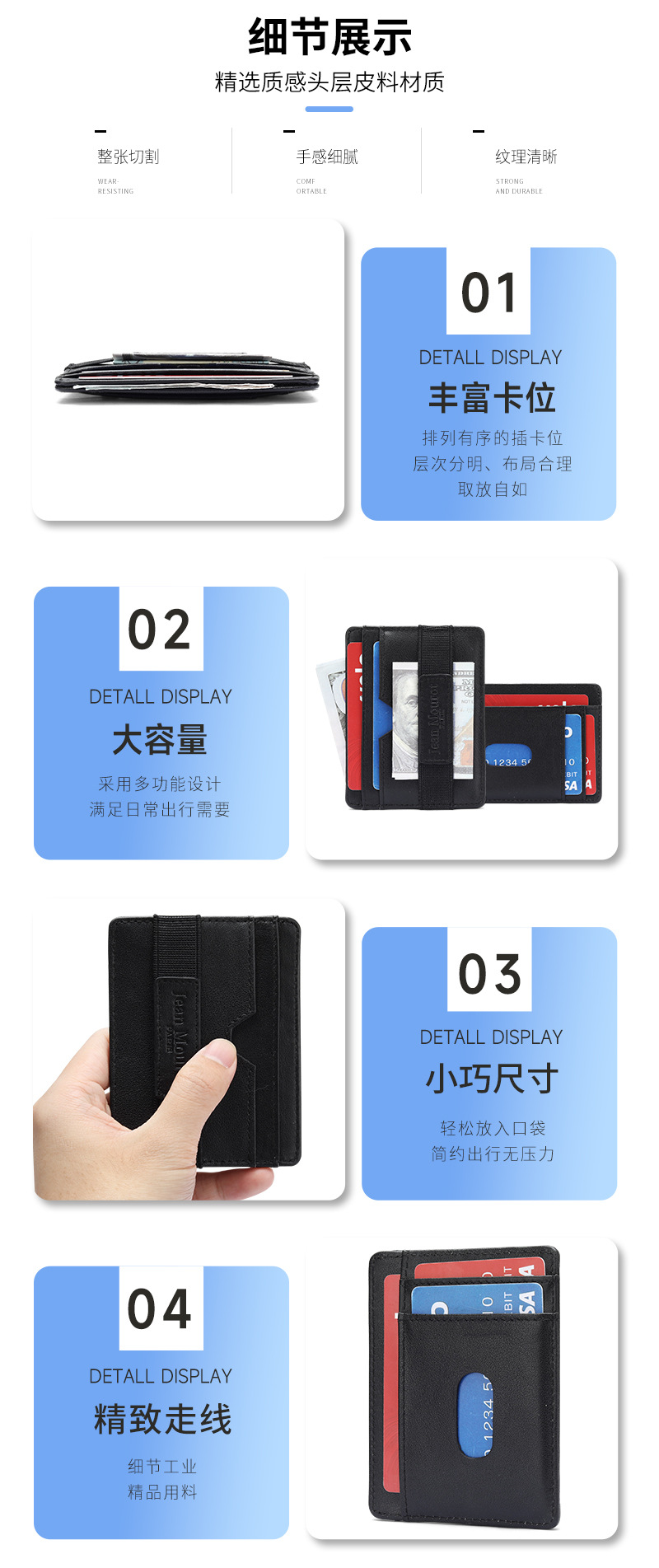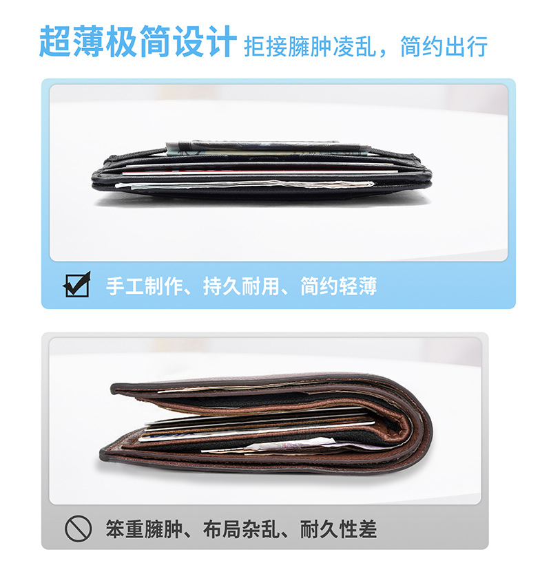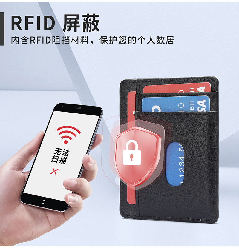 Cartera de hombre ligera transfronteriza de alto nivel multi-tarjeta anti-magnetizado cartera de cuero anti-robo cepillo de control de acceso bolsa de tarjetas