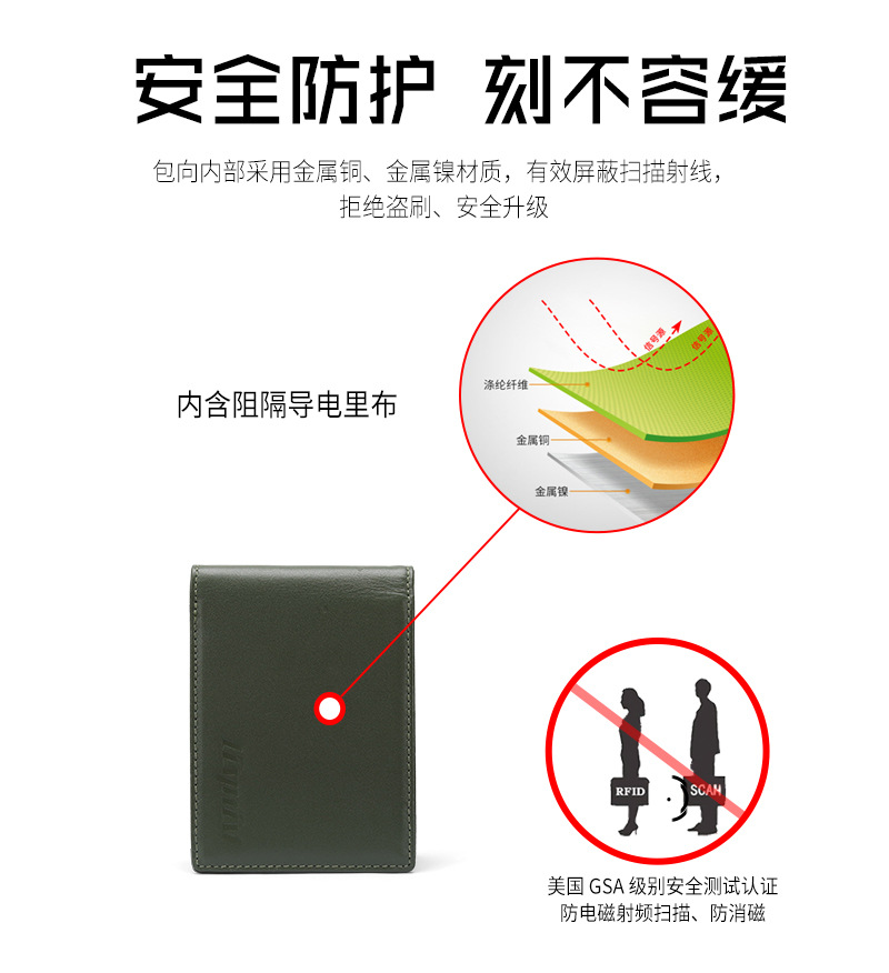 Amazon multifunción tarjeta de identificación multi-tarjeta RFID anti-robo cartera de cuero cartera de negocios portátil para hombres
