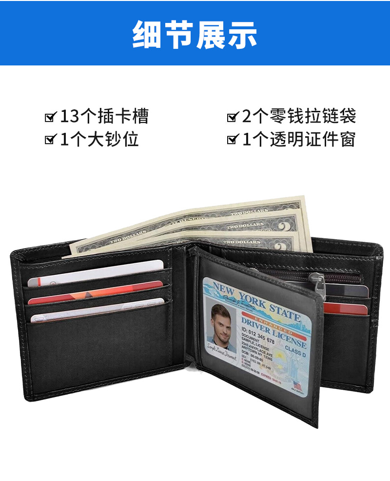 Multi-tarjeta transfronteriza cartera de cuero de vaca de primer nivel para hombres cepillo antirrobo RFID bolso de cambio corto doble billetera de cuero