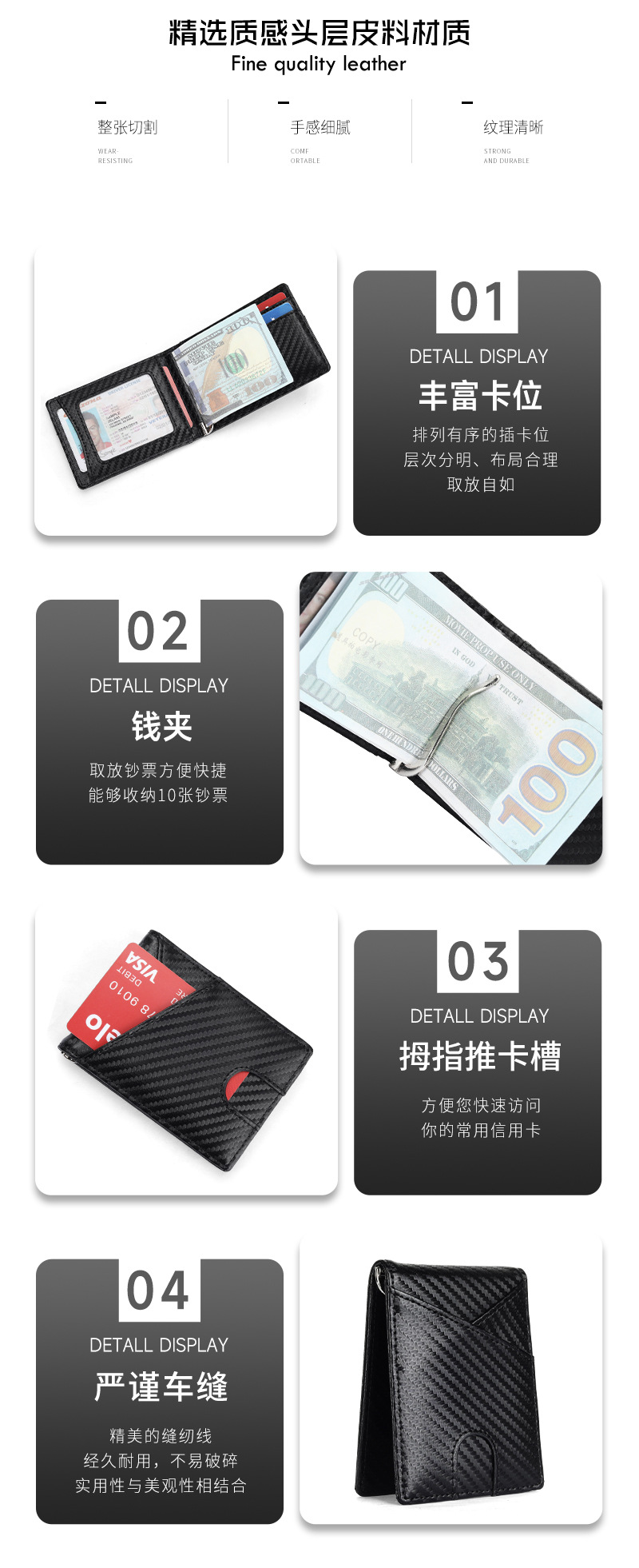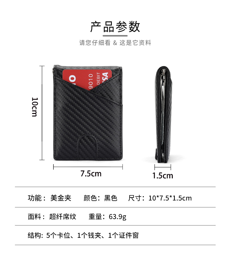 Transfronteriza ultra delgada RFID anti-magnetizado clip de dólares de fibra de carbono tarjeta de patrón bolsa multi-tarjeta cartera de negocios de hombre
