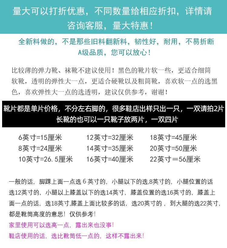| Color | BOTAS blancas y transparentes de 4 pulgadas / sin longitud de imagen 10cm 8,9g, botas negras de 4 pulgadas / sin longitud de imagen 10cm 10g, botas negras de 6 pulgadas / sin longitud de imagen 20cm 21,5g, botas negras de 8 pulgadas / sin longitud de imagen 24cm 32,8g, botas negras de 10 pulgadas / sin longitud de imagen 26cm 38,5g, botas negras de 12 pulgadas / sin longitud de imagen 32cm 46,9g, botas negras de 14 pulgadas / sin longitud de imagen 36cm 53g, botas negras de 16 pulgadas / sin longitud de imagen 40cm 69,5g, botas negras de 18 pulgadas / sin longitud de imagen 45cm 72g, botas negras de 20 pulgadas / sin longitud de imagen 50cm cm 98.2g, botas negras de 22 pulgadas / sin imagen 56cm 100g, botas blancas transparentes de 6 pulgadas / sin imagen 20cm 18.4g, botas blancas transparentes de 8 pulgadas / sin imagen 24cm 27.6g, botas blancas transparentes de 10 pulgadas / sin imagen 26cm 32.9g, botas blancas transparentes de 12 pulgadas / sin imagen 32cm 38.3g, botas blancas transparentes de 14 pulgadas / sin imagen 36cm 47.6g, botas blancas transparentes de 16 pulgadas / sin imagen 40cm 55.1g, botas blancas transparentes de 18 pulgadas / sin imagen 45cm 62.4g, BOTAS blancas transparentes de 20 pulgadas / sin longitud de imagen 50cm 73,7g, botas blancas transparentes de 22 pulgadas / sin longitud de imagen 56cm 79,7g, botas negras de 6 pulgadas / con longitud de imagen 20cm 22,7g, botas negras de 8 pulgadas / con longitud de imagen 24cm 32,7g, botas negras de 10 pulgadas / con longitud de imagen 26cm 38,4g, botas negras de 12 pulgadas / con longitud de imagen 32cm 48,8g, botas negras de 14 pulgadas / con longitud de imagen 36cm 55,6g, botas negras de 16 pulgadas / con longitud de imagen 40cm 57,8g, botas negras de 18 pulgadas / con longitud de imagen 45cm, negras de 20,8g botas de pulgada / con longitud de imagen 50cm 85,4g, botas de 22 pulgadas negras / Con longitud de imagen 56cm 101,9g, botas negras de 5 pulgadas / sin longitud de letra 15cm de largo, botas blancas de 5 pulgadas / sin longitud de letra 15cm de largo |