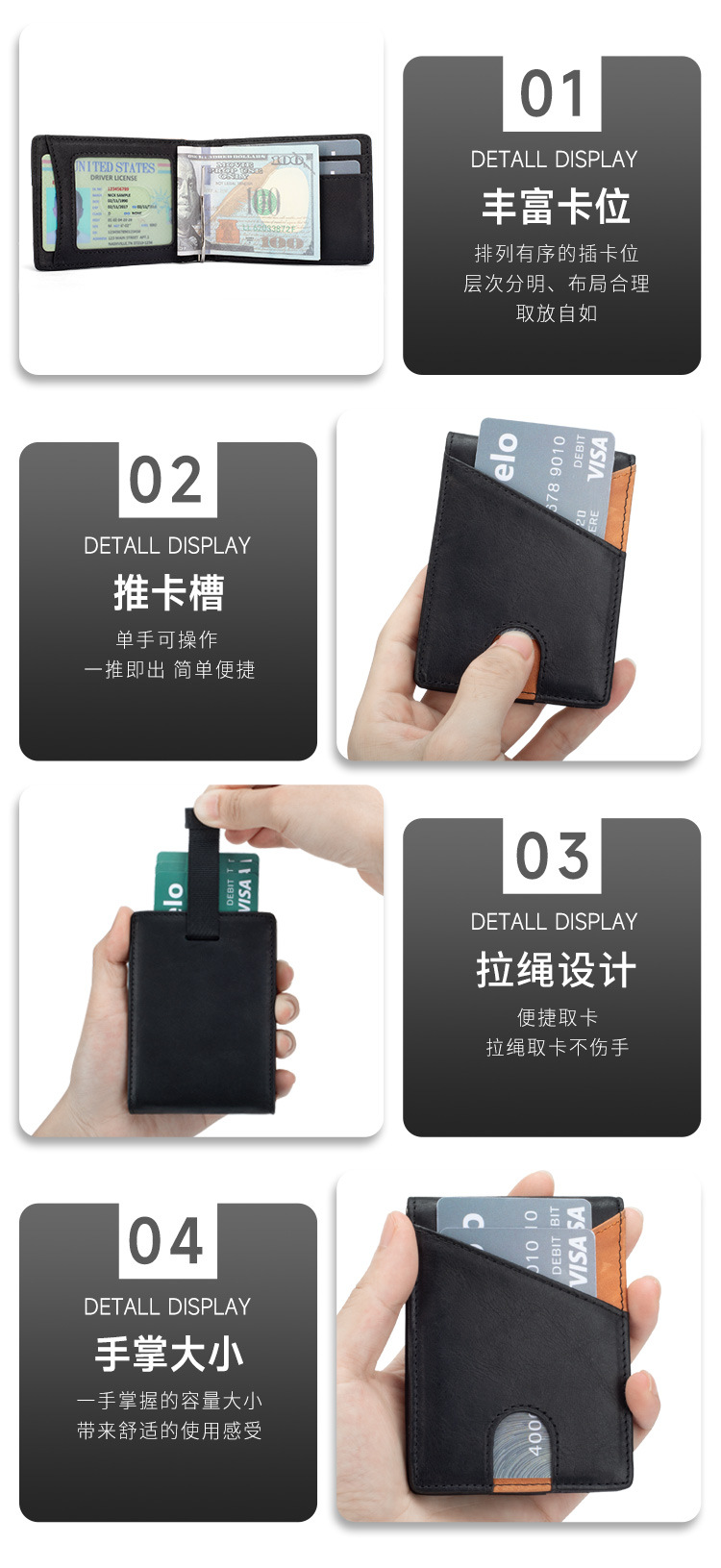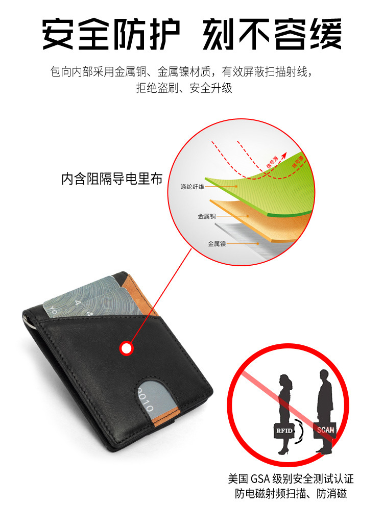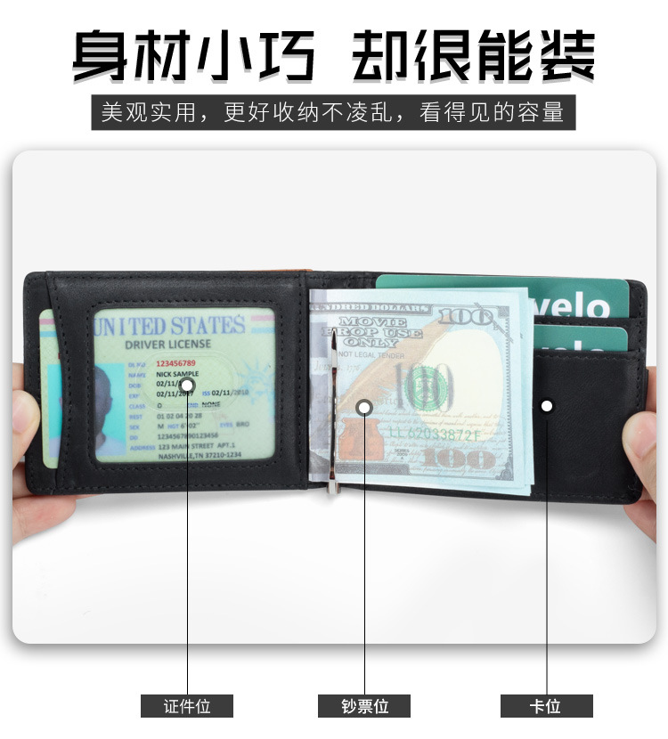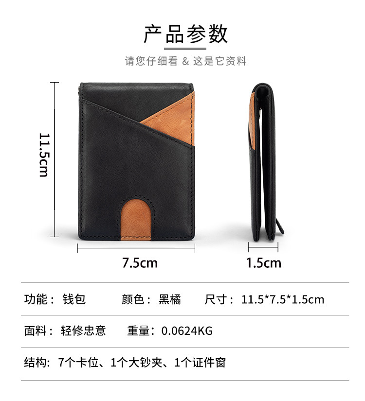 Cartera Bifold Multifuncional con Bloqueo de Color para Hombre, con Protección RFID Anti-Robo, Tarjetero, Monedero para Billetes, Ultrafina, de Cuero Genuino, para Negocios