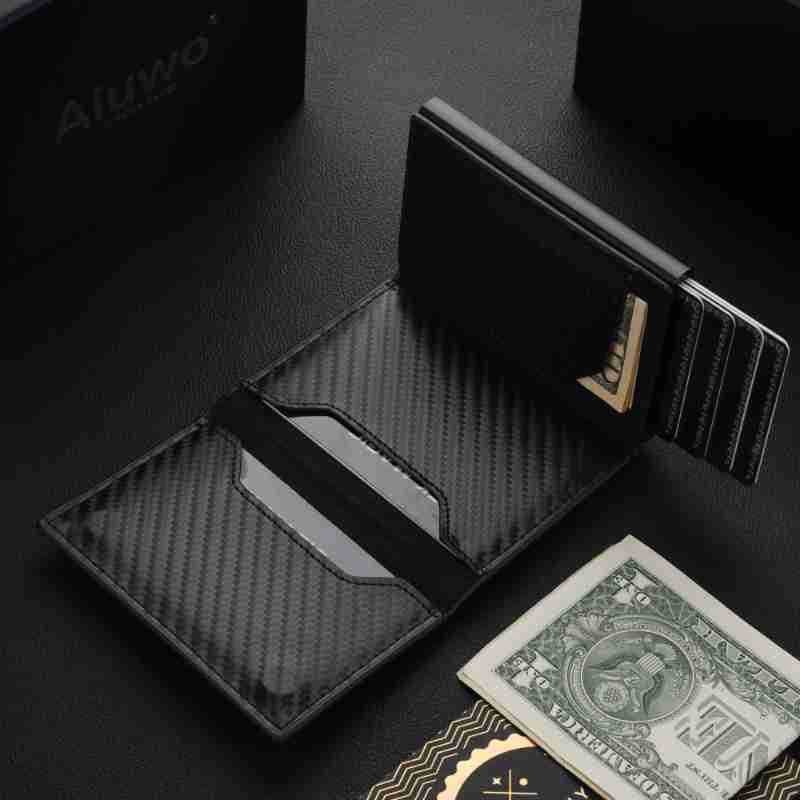 Amazon ultra delgada caja de tarjetas metálicas plegables RFID antirrobo cepillo de tarjeta de crédito bolsa de tarjetas multifuncional cartera de hombre