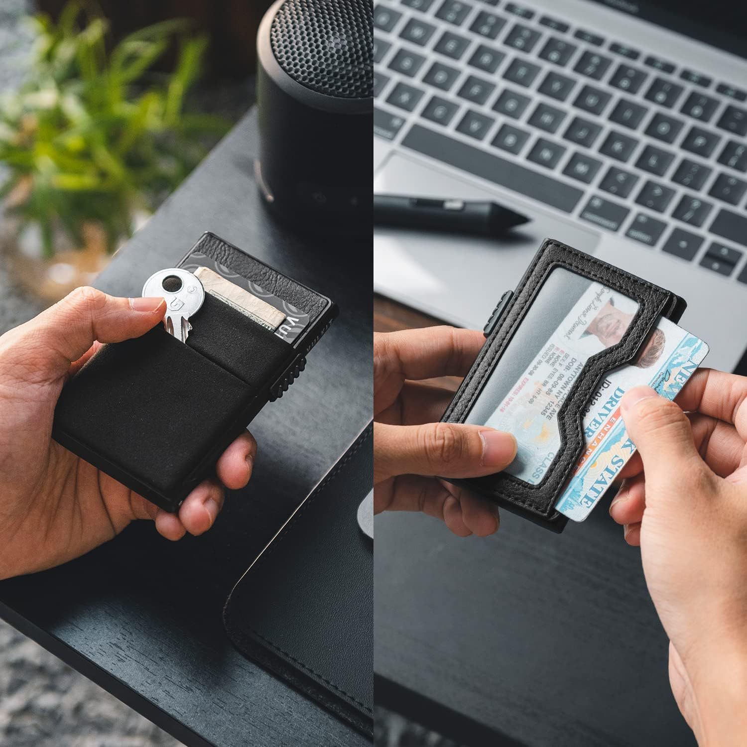 Amazon ultra delgada caja de tarjetas metálicas plegables RFID antirrobo cepillo de tarjeta de crédito bolsa de tarjetas multifuncional cartera de hombre