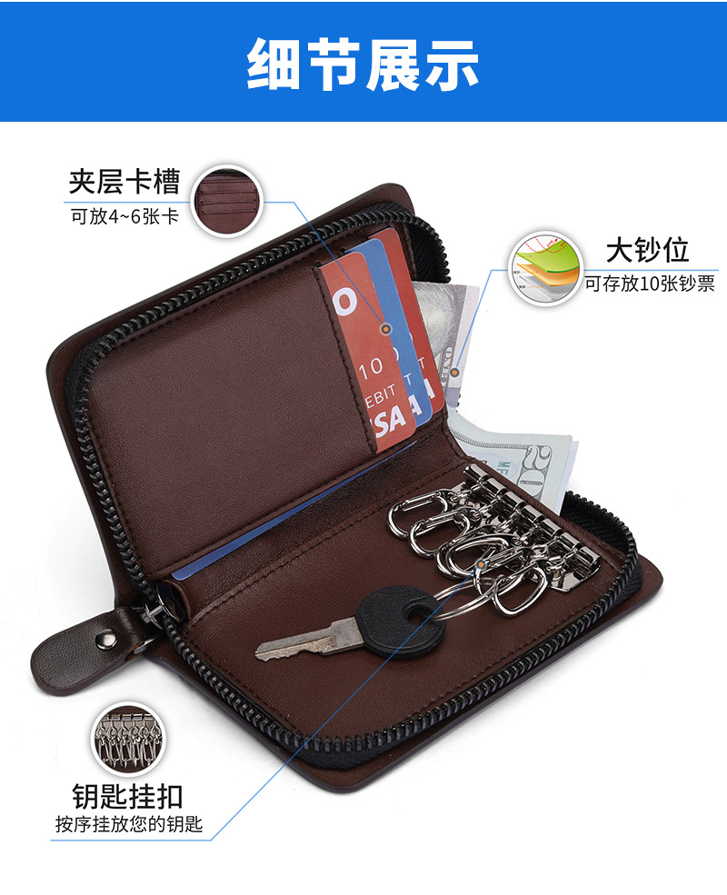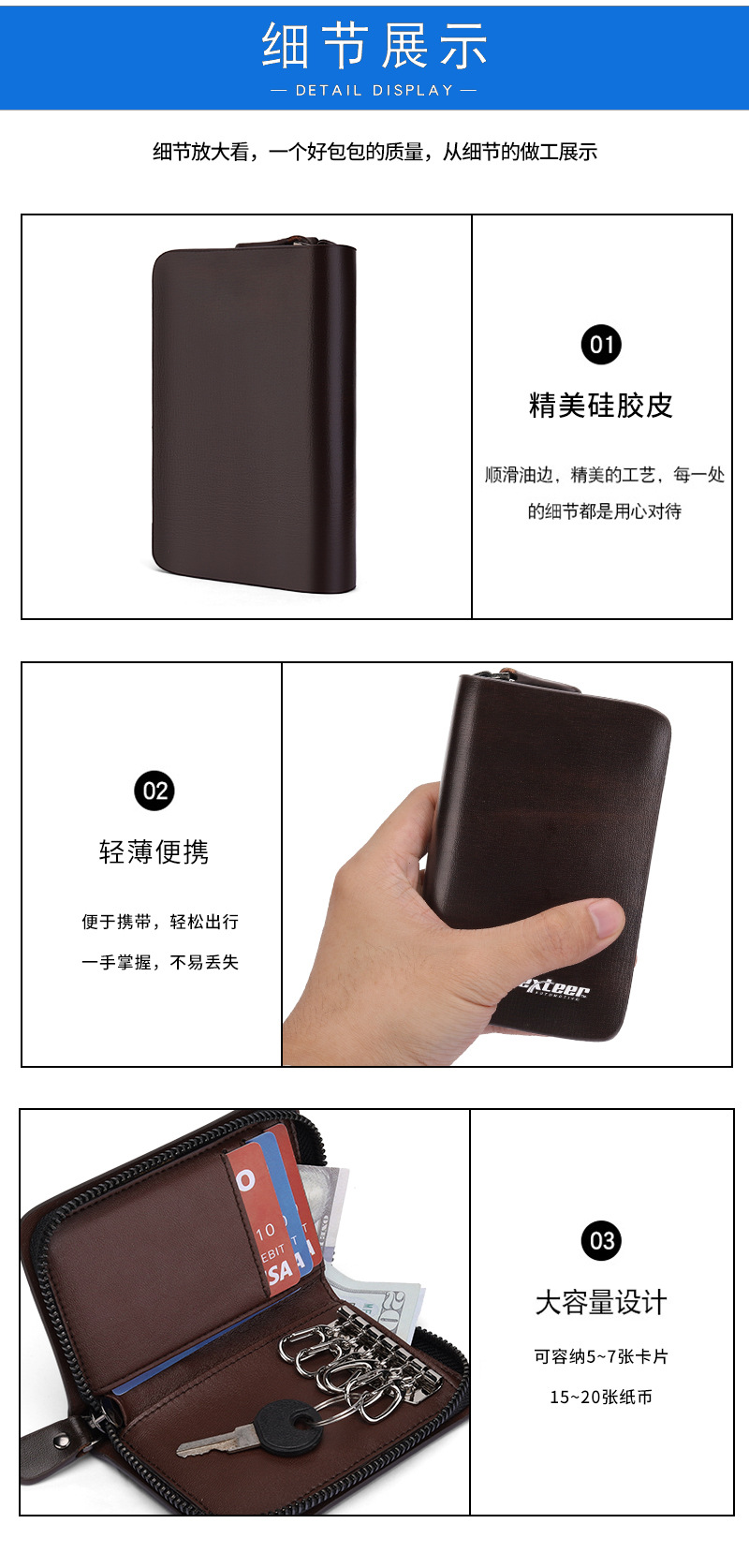 Amazon negocio multifunción llave bolsa de almacenamiento de automóviles de gran capacidad bolsa de hebilla de cuero para hombres cremallera cintura cartera