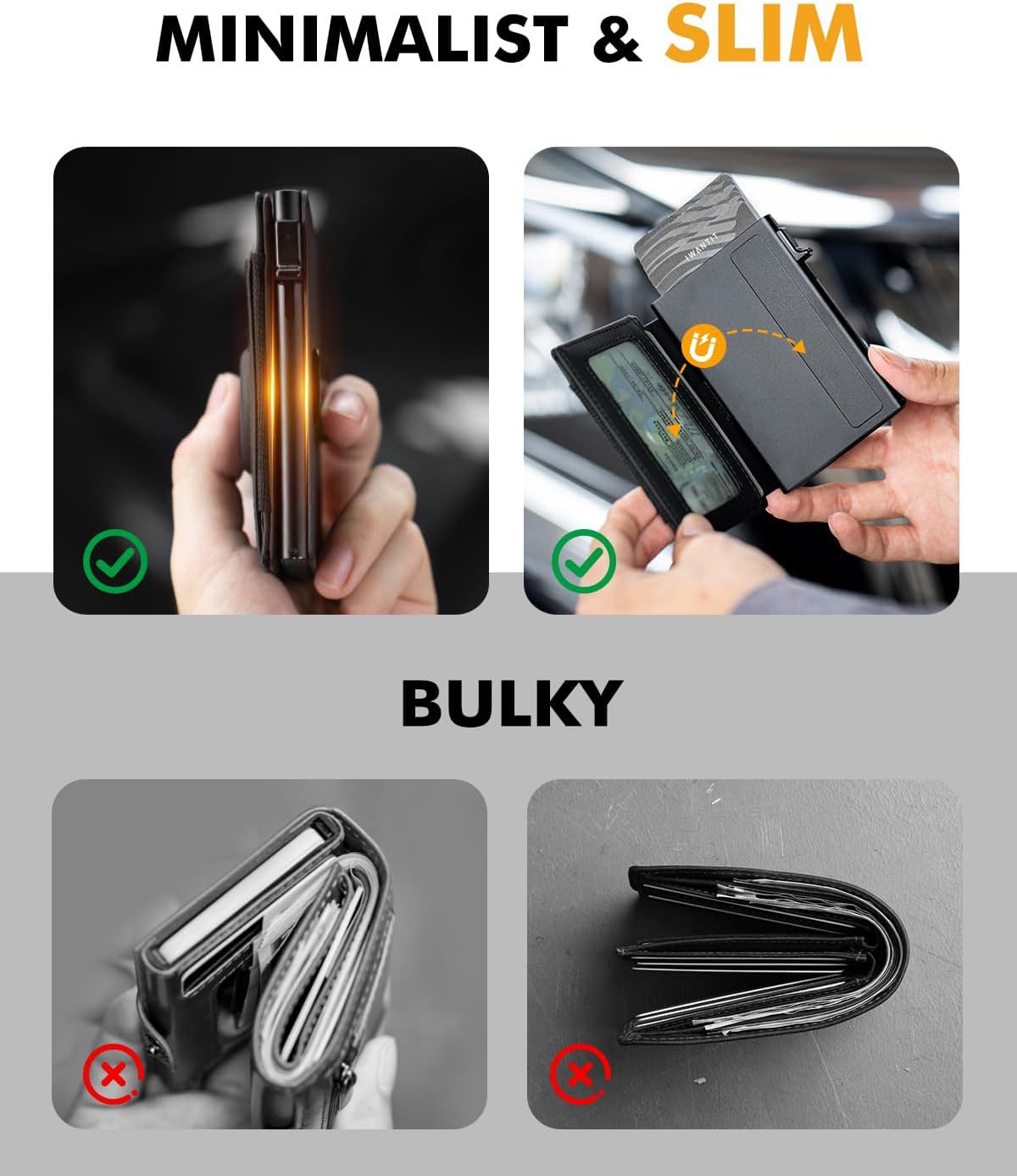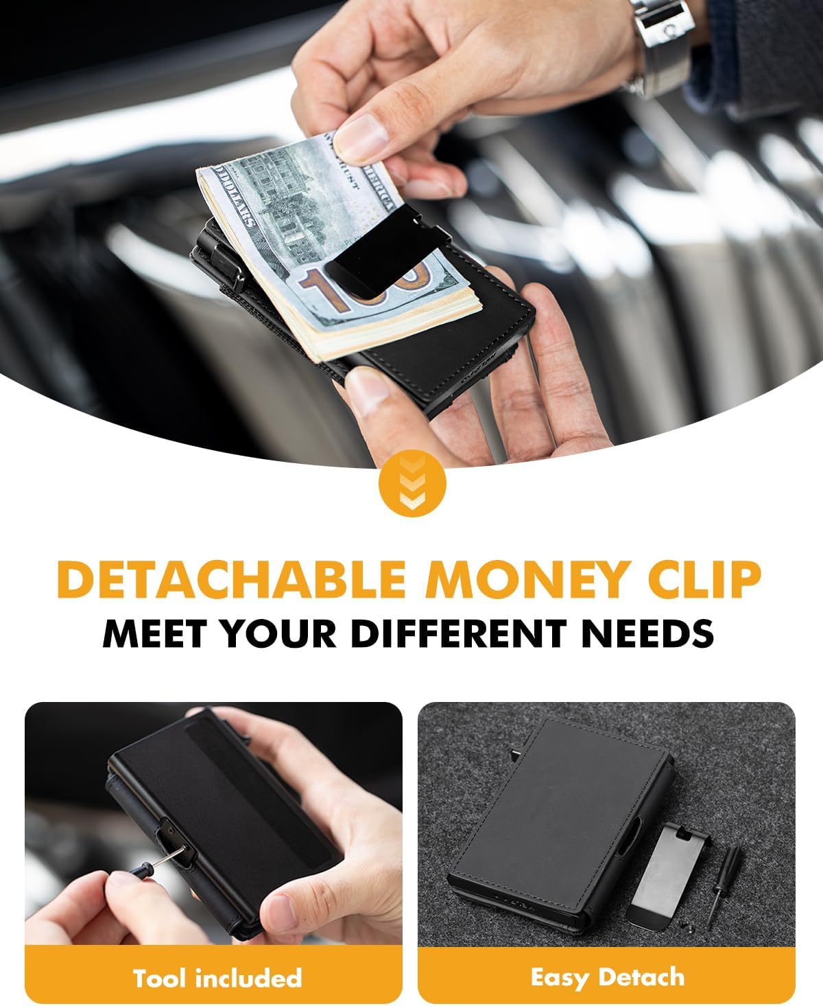 Personalizada multifuncional RFID anti-robo bolsa de tarjeta ultra delgada corta de cuero de dólar bolso de cuero para hombres