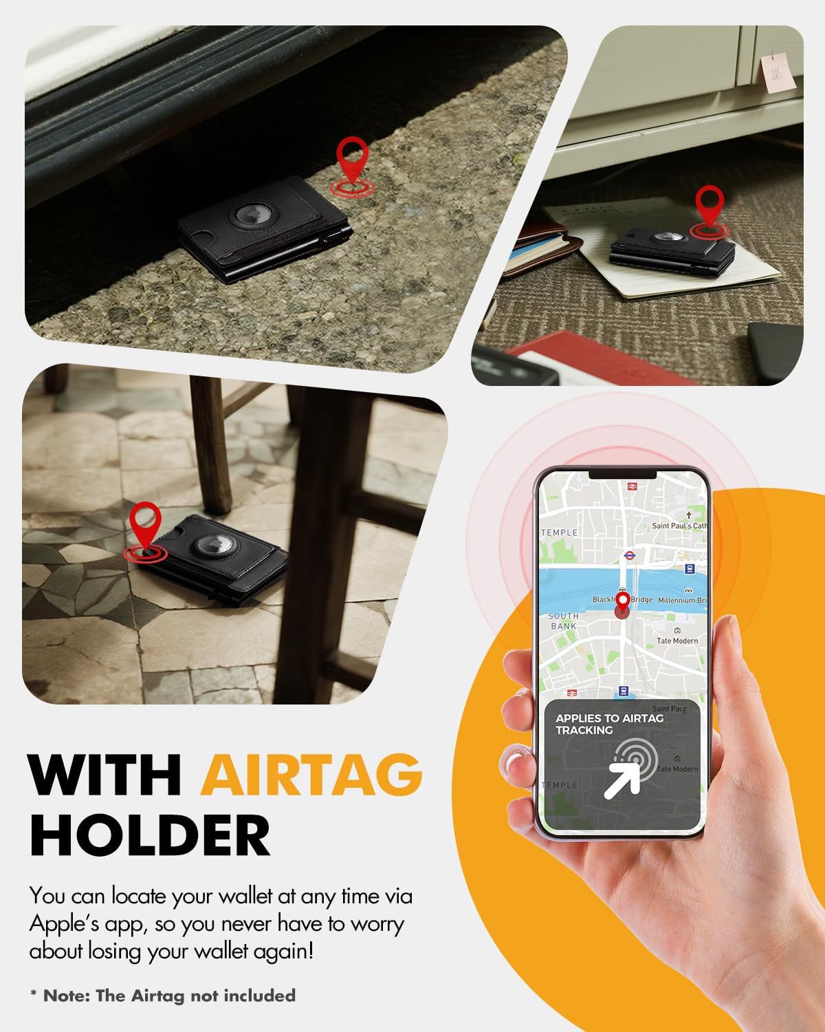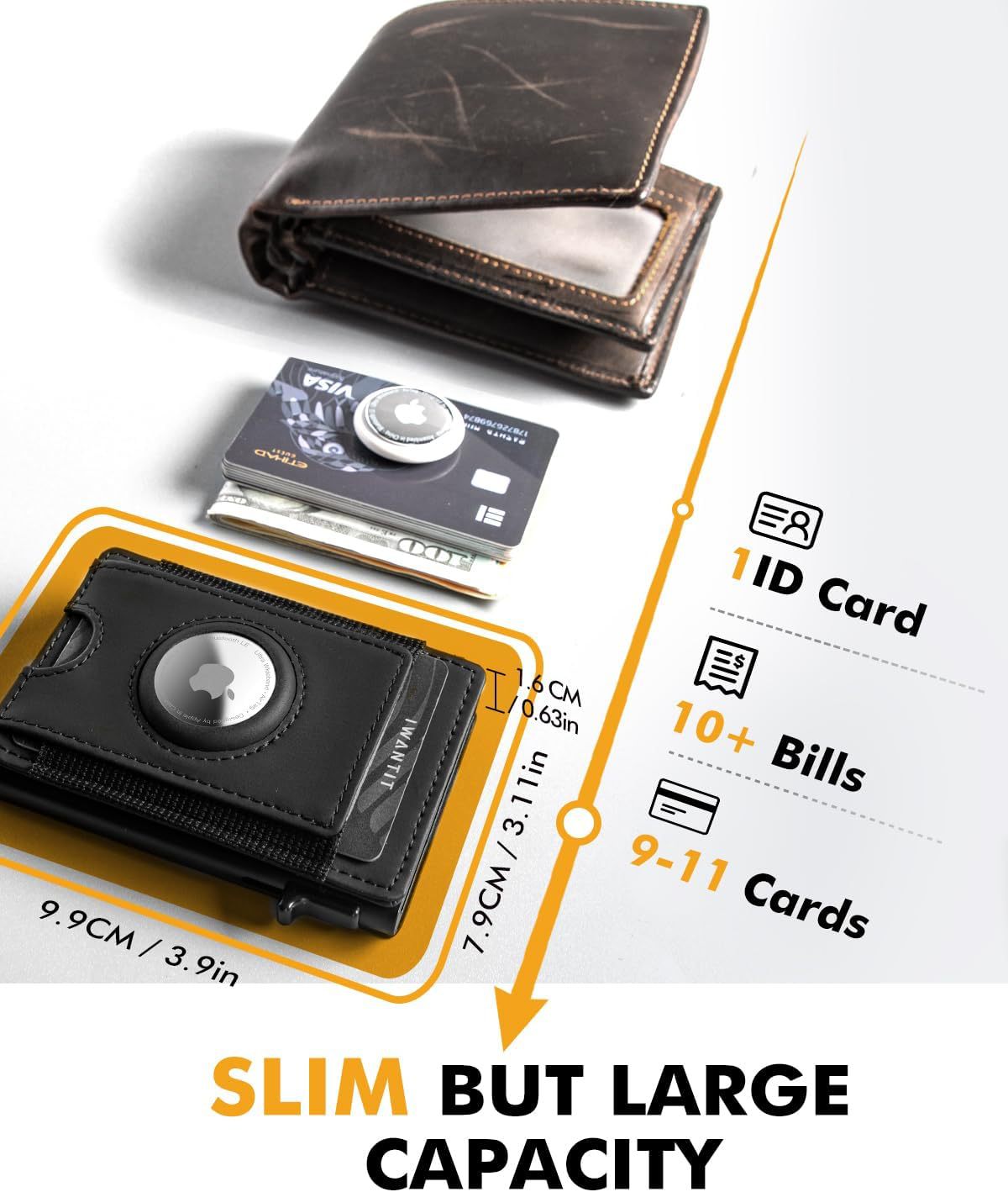 Personalizado en el extranjero doble flap AirTag billetera multi tarjeta billetera de gran capacidad RFID anti-robo billetera para hombres