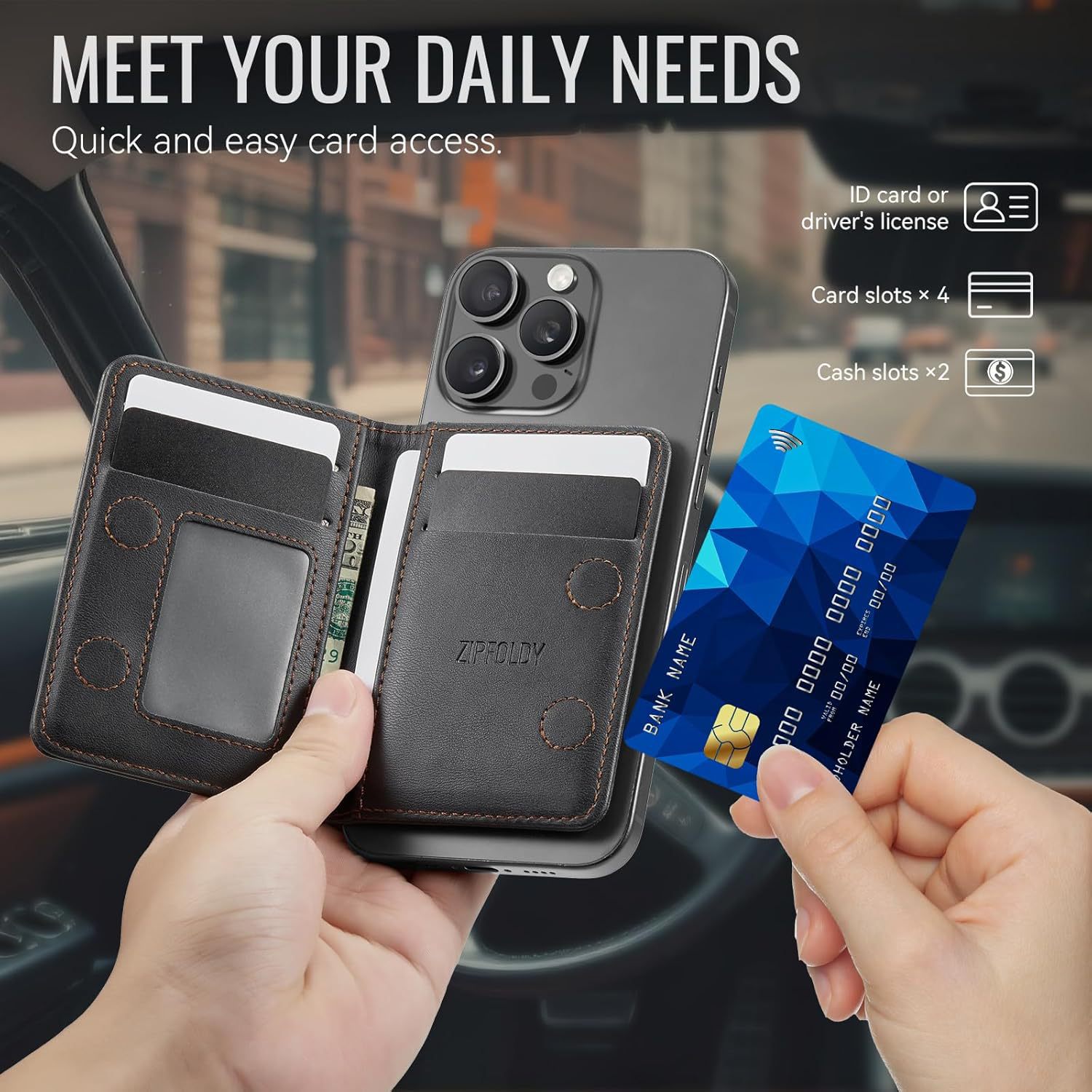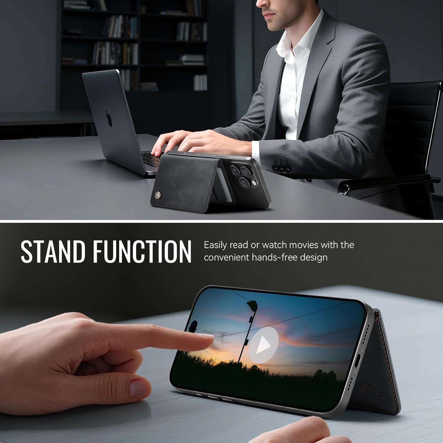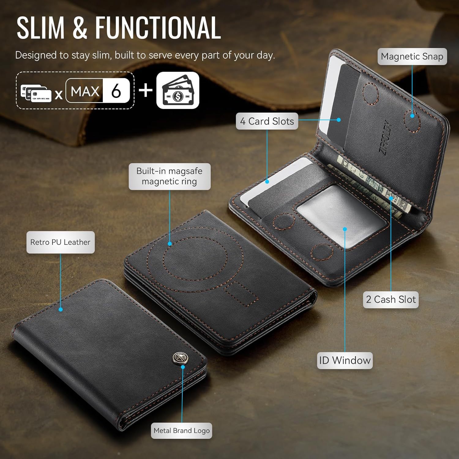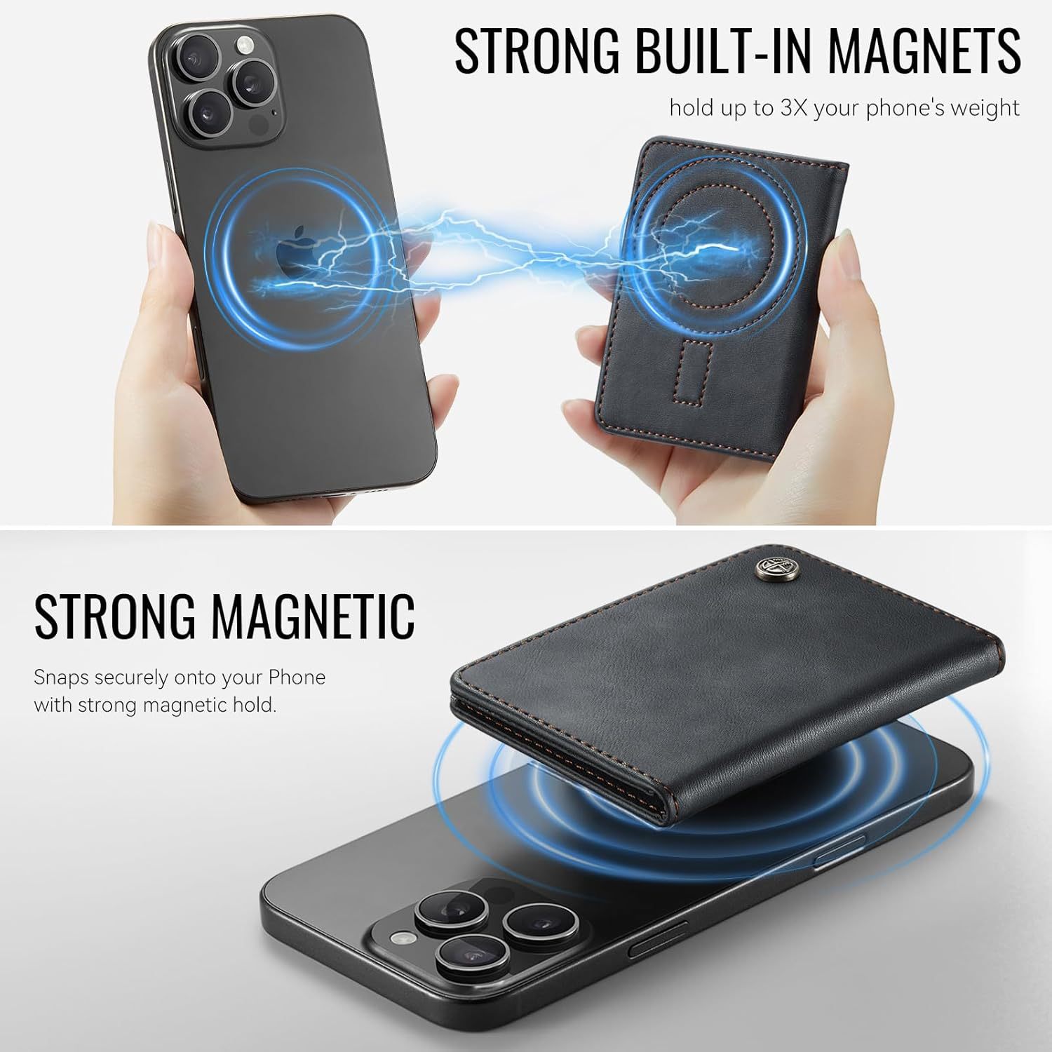 Amazon Magsafe Magnet 2 en 1 bolsa de tarjetas para iPhone RFID cepillo antirrobo de cuero bolsa de tarjetas