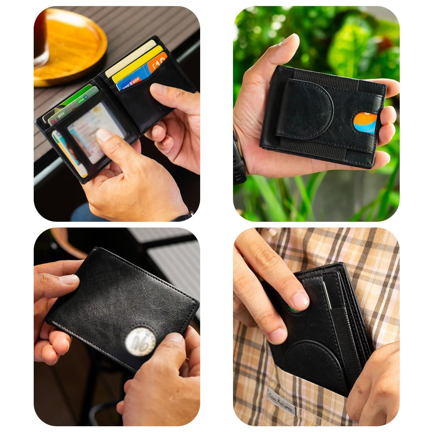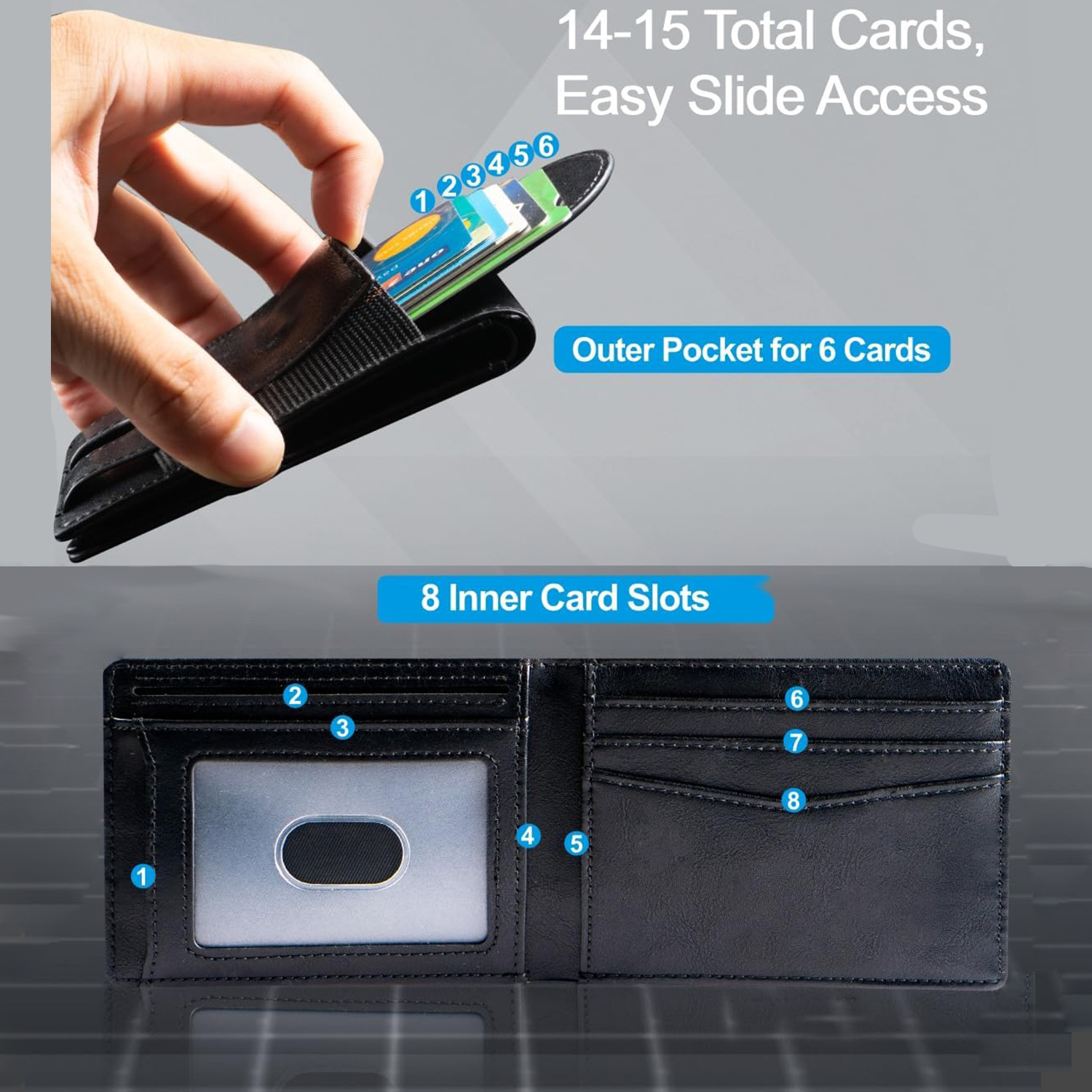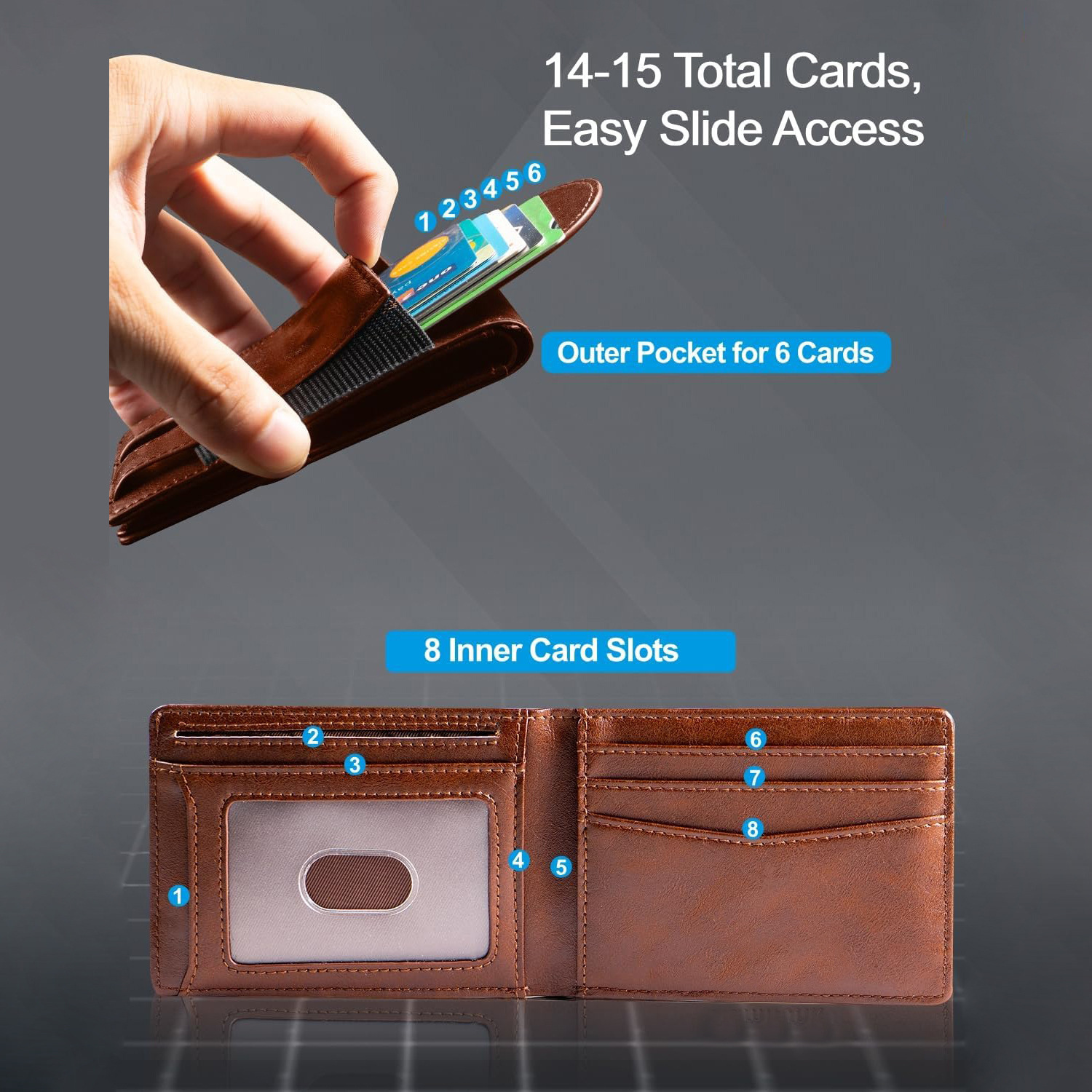 Amazon RFID blindaje multifuncional tarjeta doble doble piel de cera de aceite cartera de gran capacidad cartera de negocios de identificación de hombre