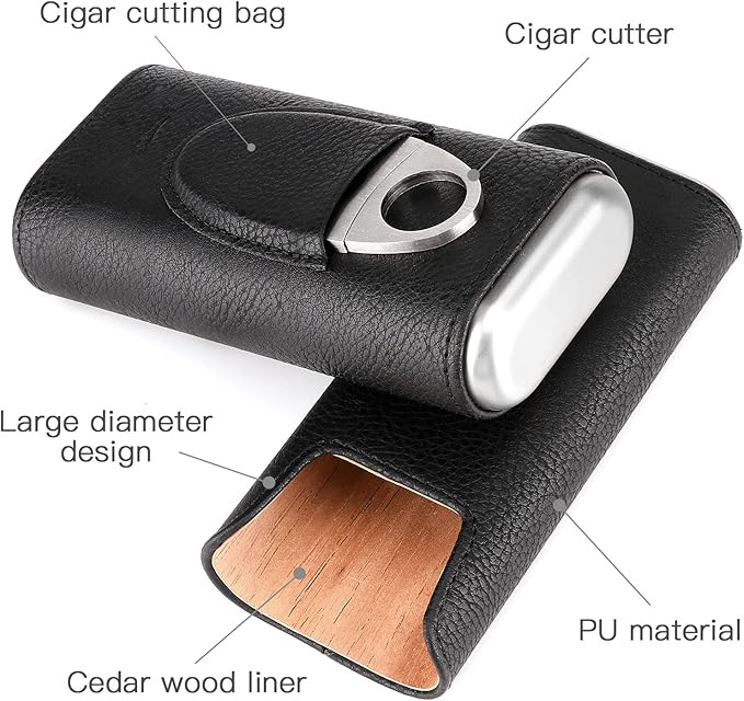 Caja de humectante de madera de cedro de regalo de alta gama de Amazon Caja de cigarrillos portátil de 3 piezas Estuche de cuero Caja de cigarros de cuero de negocios