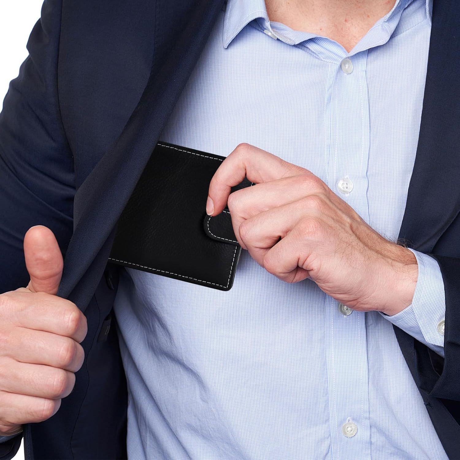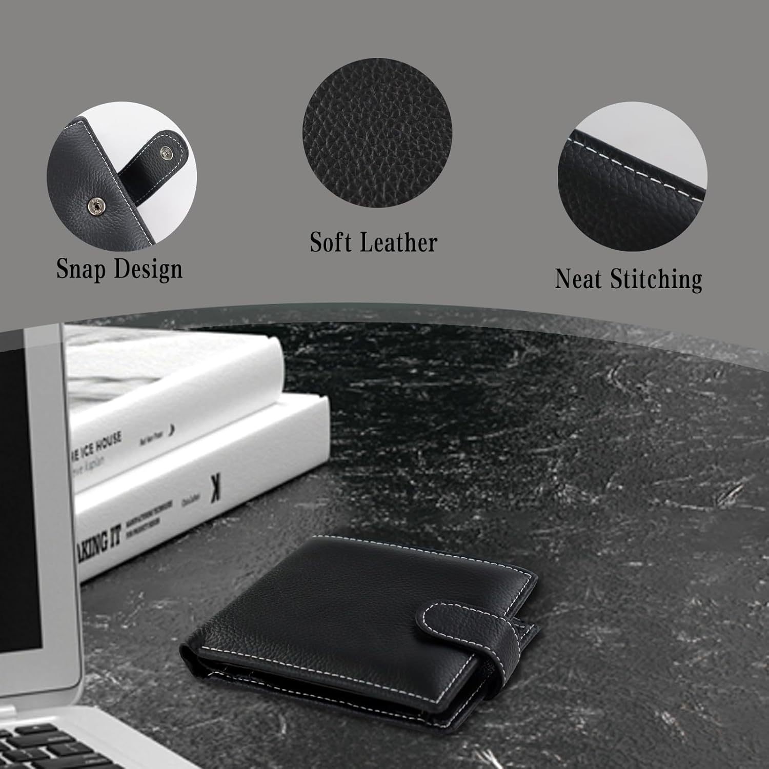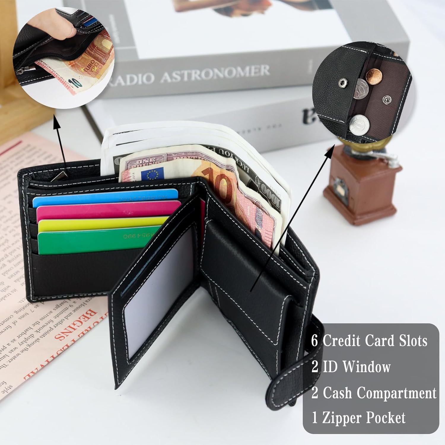 Monedero de piel de vaca de primera capa de Amazon Cartera de cuero con cepillo antirrobo multifuncional para hombre Cartera de negocios corta de gran capacidad